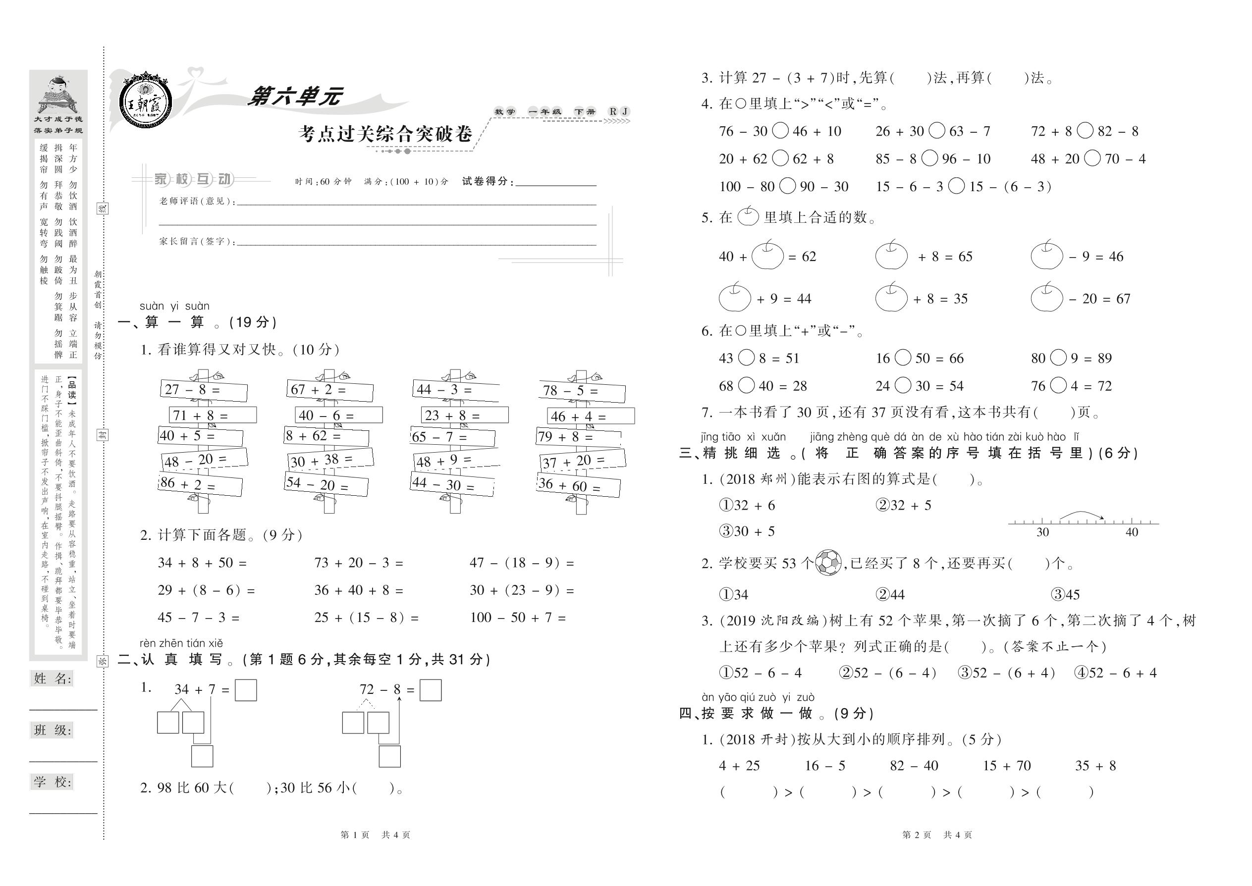 2021下册一年级数学人教版 第六单元 考点过关综合突破卷_R210924152556295