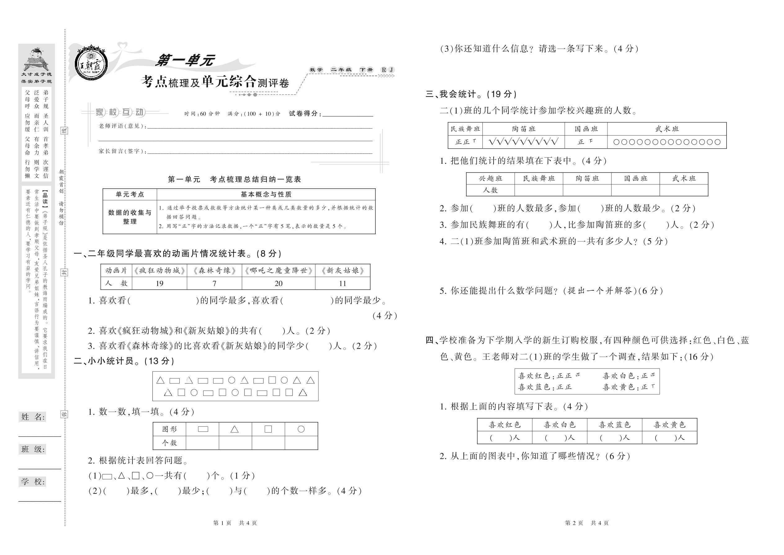 2021下册二年级数学人教版 第一单元 考点梳理及单元综合测评卷