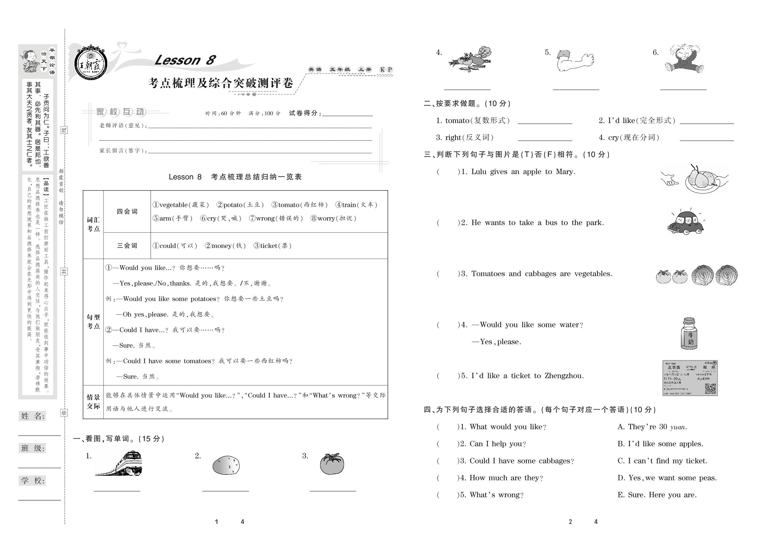 2020上册五年级英语科普版 Lesson 8 考点梳理及综合突破测评卷