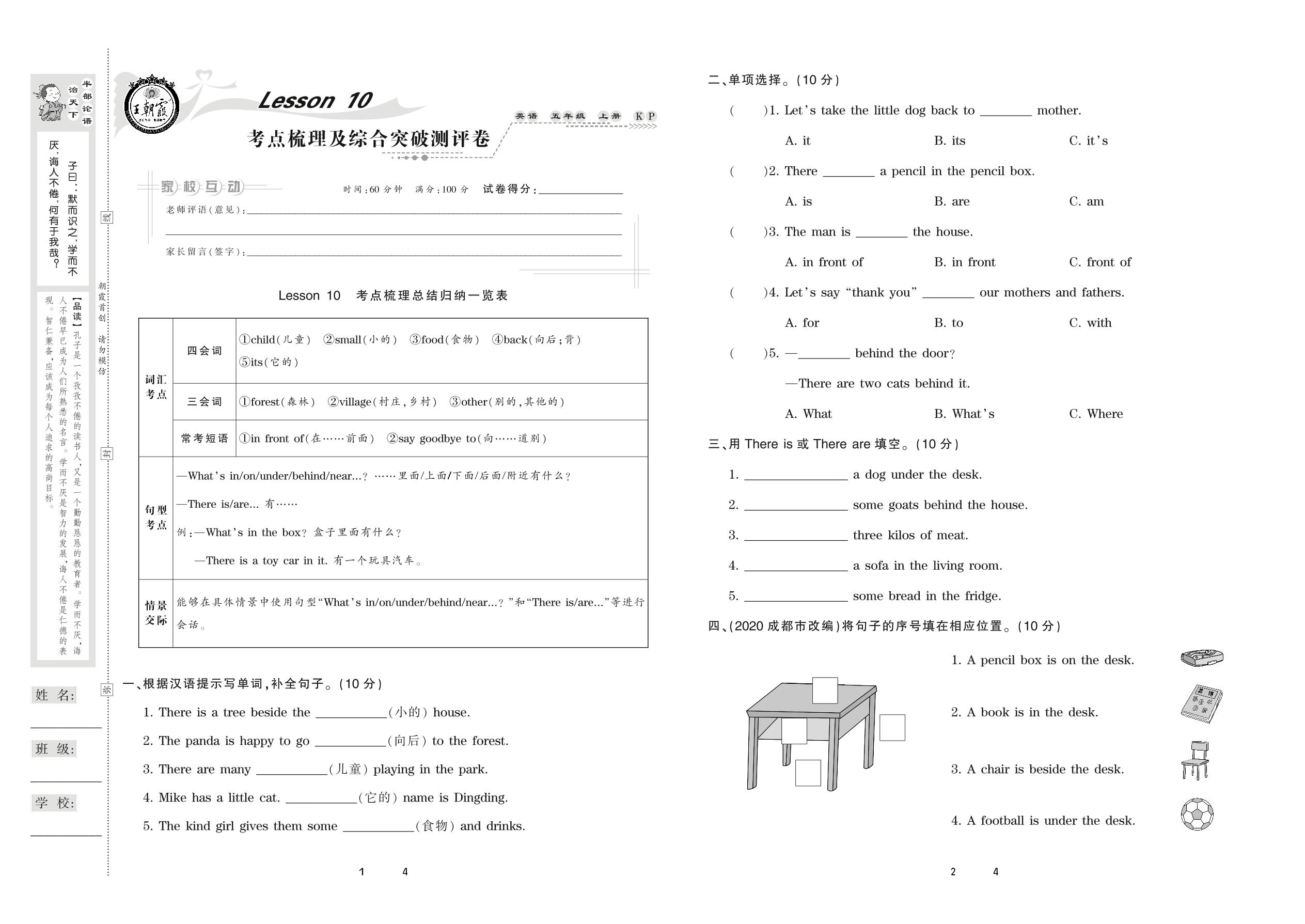 2020上册五年级英语科普版 Lesson 10 考点梳理及综合突破测评卷