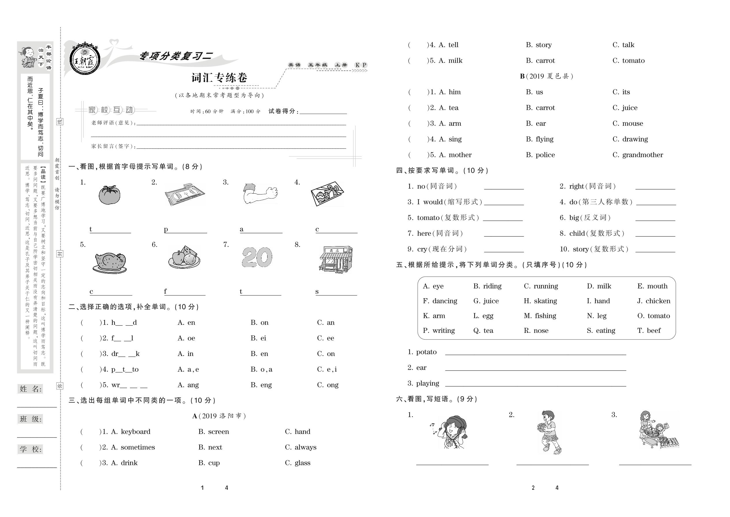 2020上册五年级英语科普版 词汇专练卷