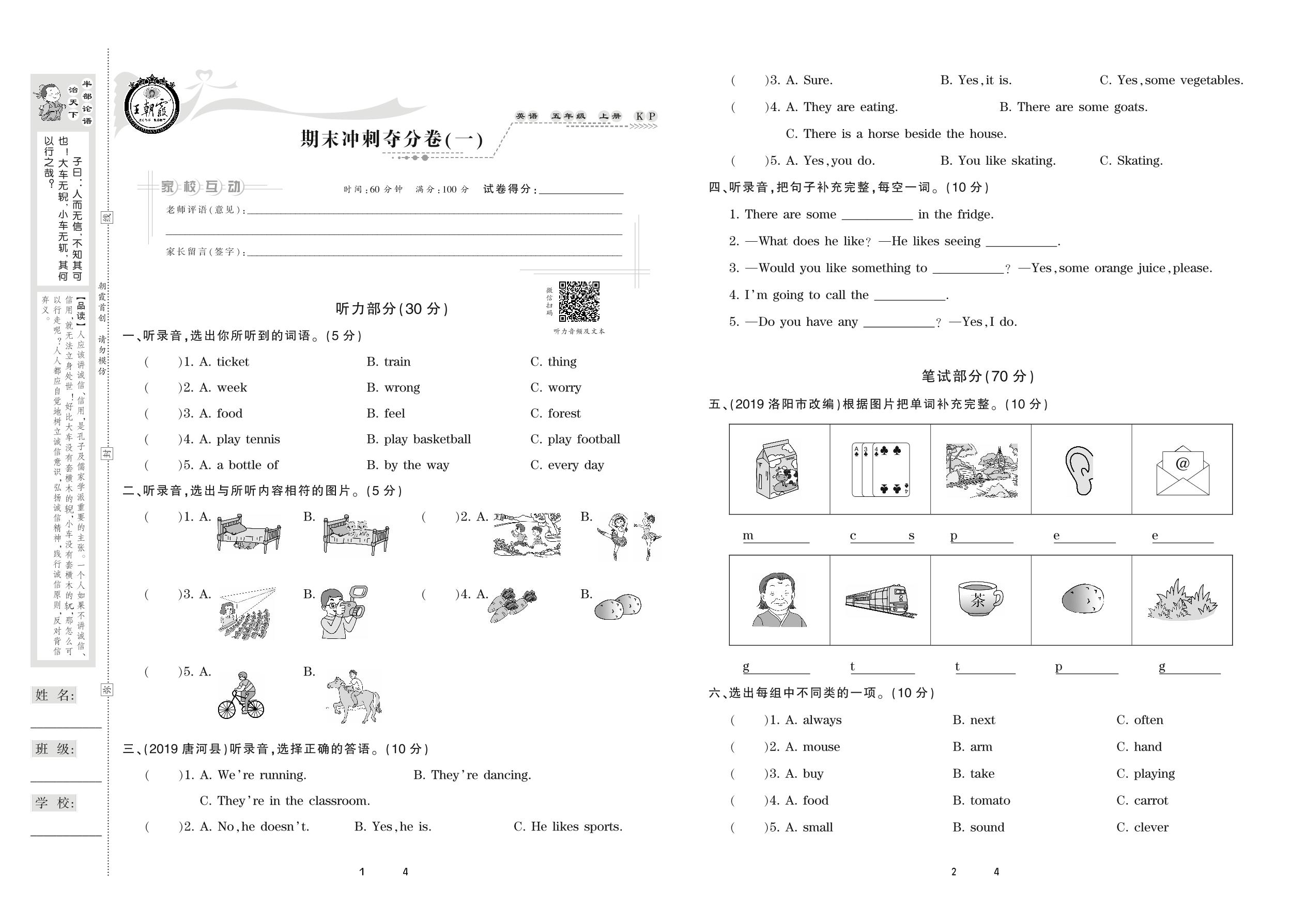 2020上册五年级英语科普版 期末冲刺夺分卷(一)