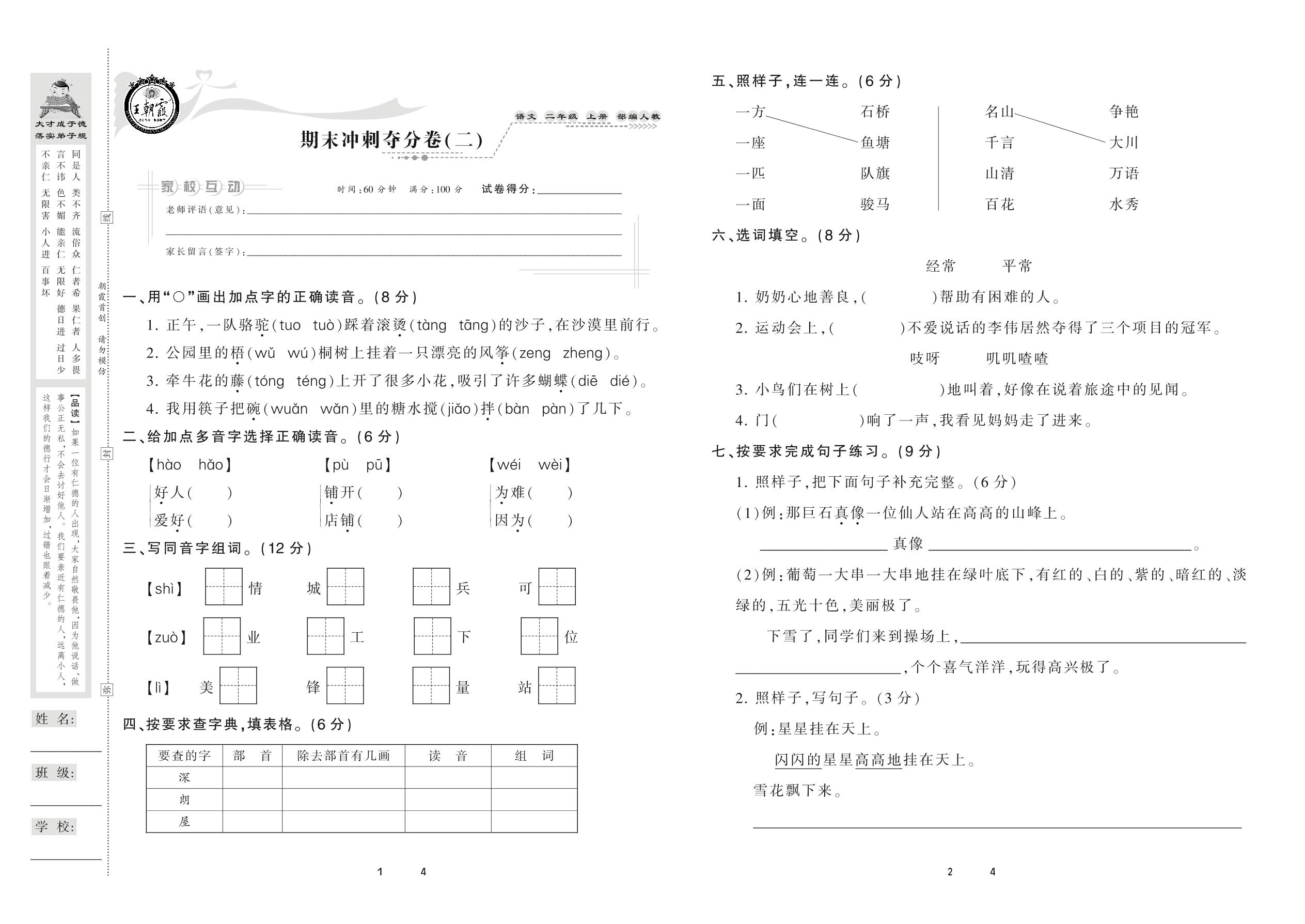 2020上册二年级语文人教版 期末冲刺夺分卷(二)
