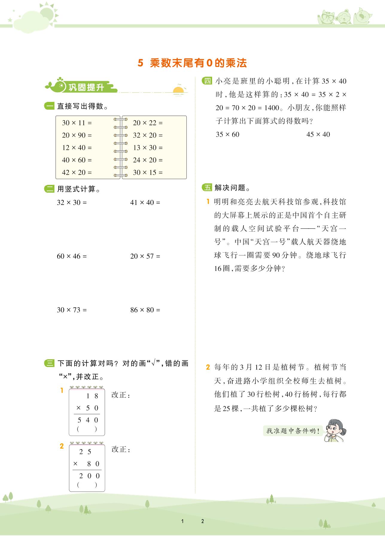 2021下册三年级数学苏教版 第一单元 两位数乘两位数——5 乘数末尾有0的乘法