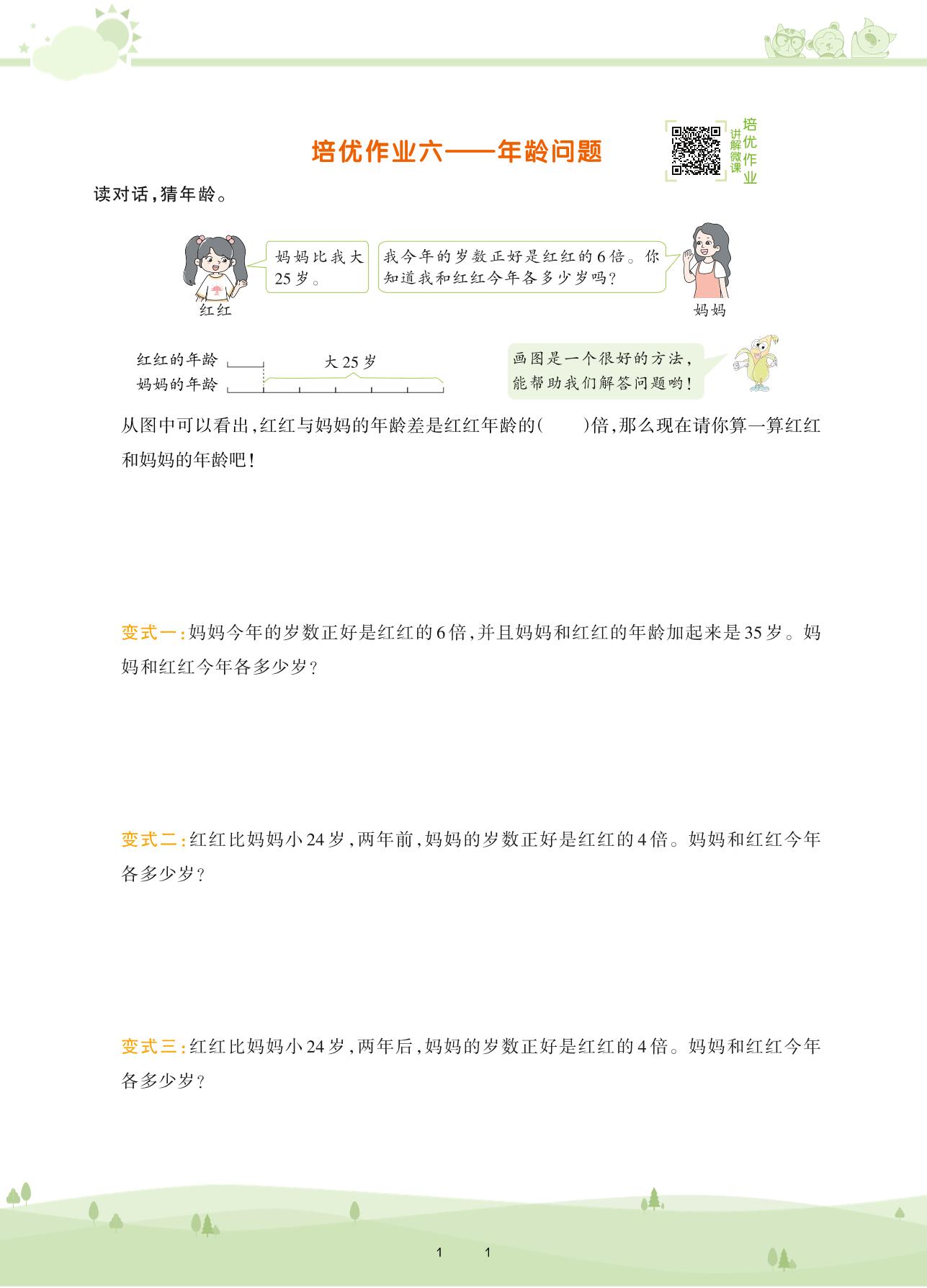 2021下册三年级数学苏教版 第三单元 解决问题的策略——培优作业六 年龄问题