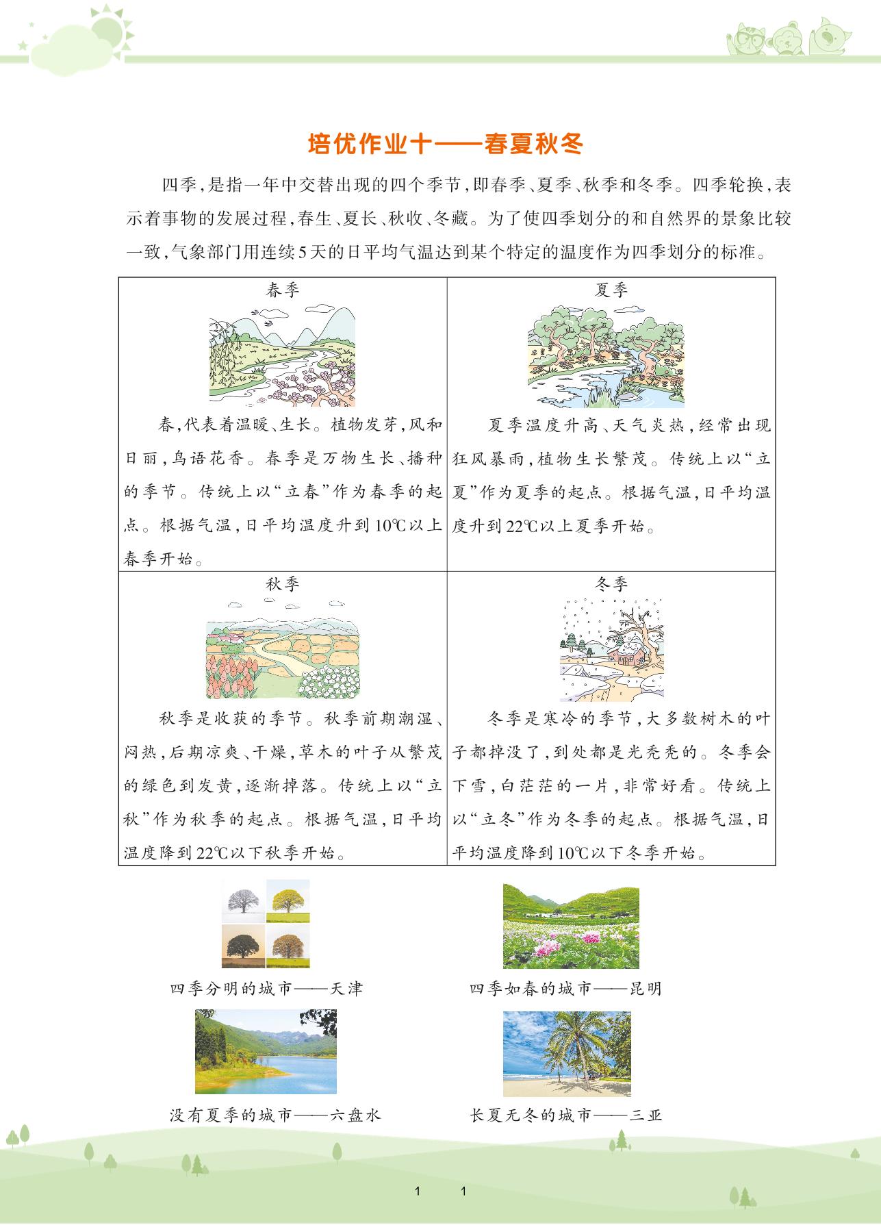 2021下册三年级数学苏教版 第五单元 年、月、日——培优作业十 春夏秋冬
