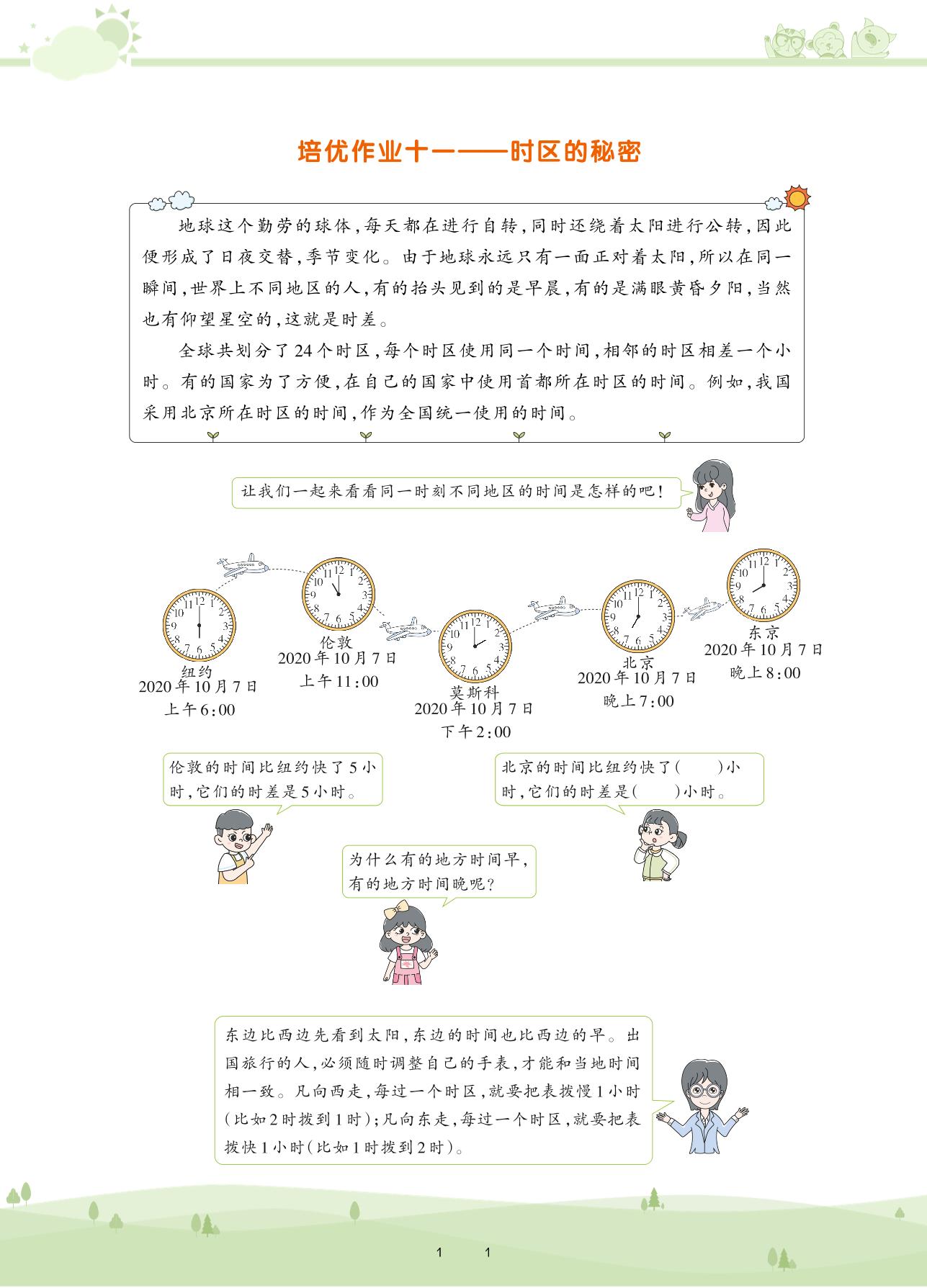 2021下册三年级数学苏教版 第五单元 年、月、日——培优作业十一 时区的秘密