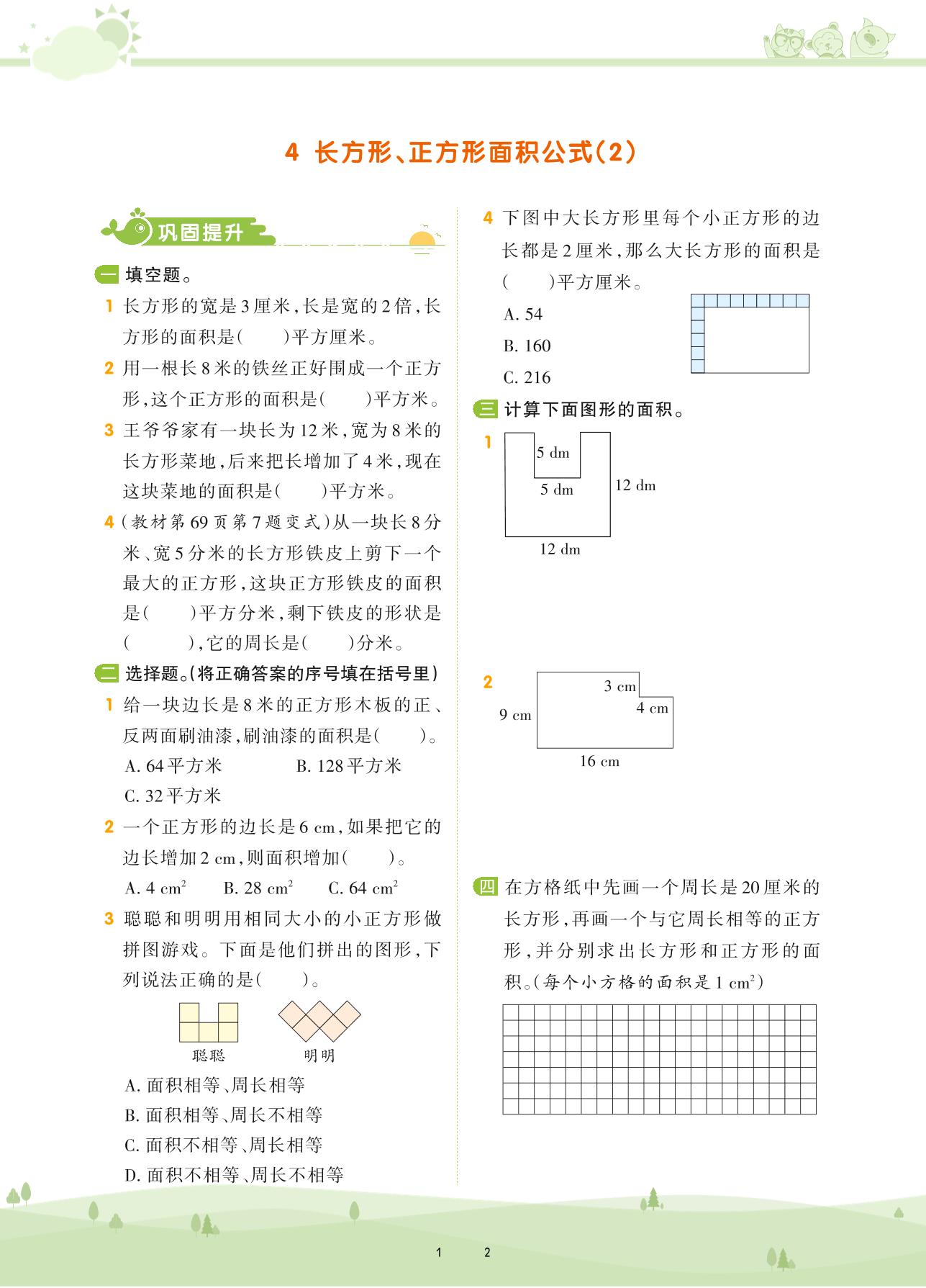 2021下册三年级数学苏教版 第六单元 长方形和正方形的面积——4 长方形、正方形面积公式(2)