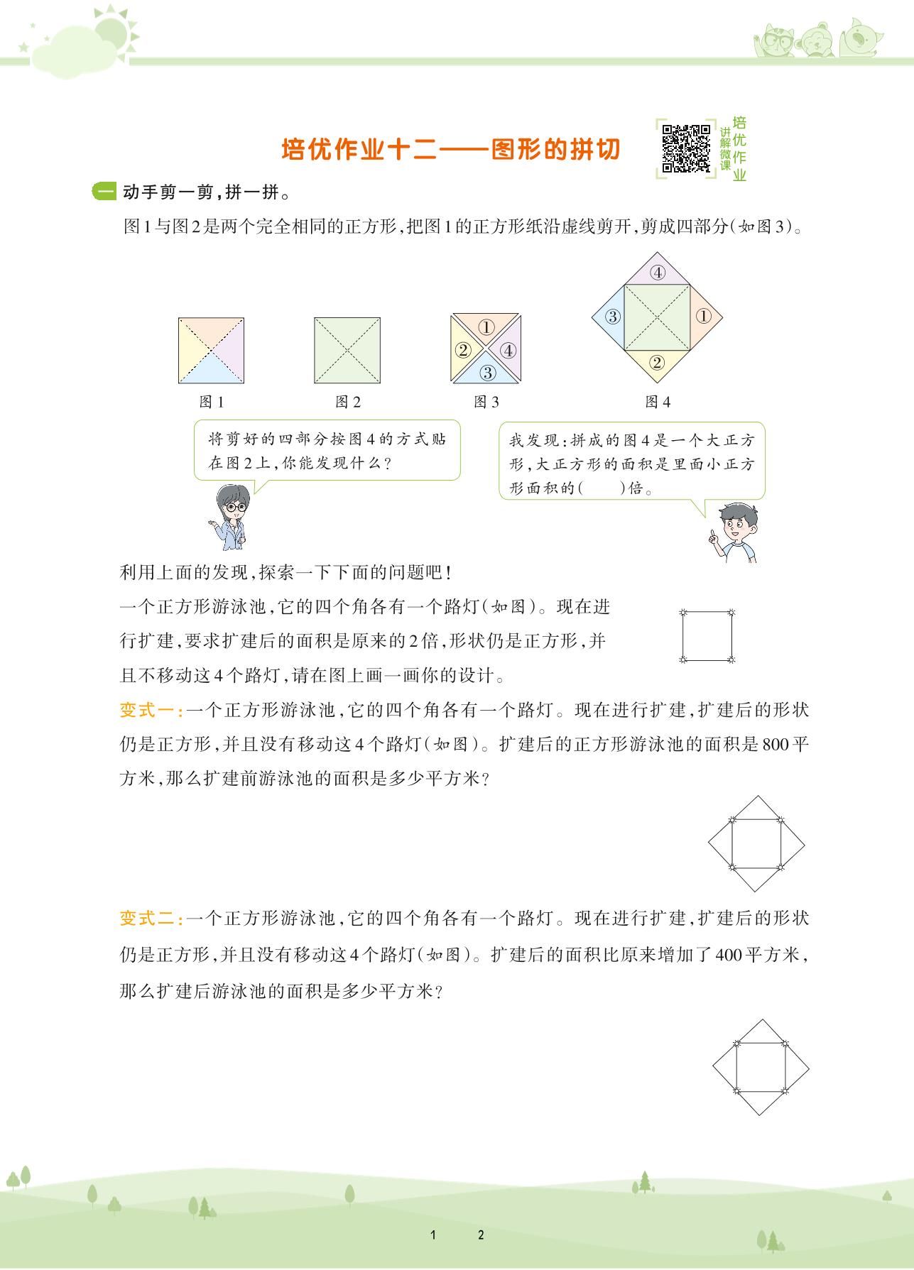 2021下册三年级数学苏教版 第六单元 长方形和正方形的面积——培优作业十二 图形的拼切