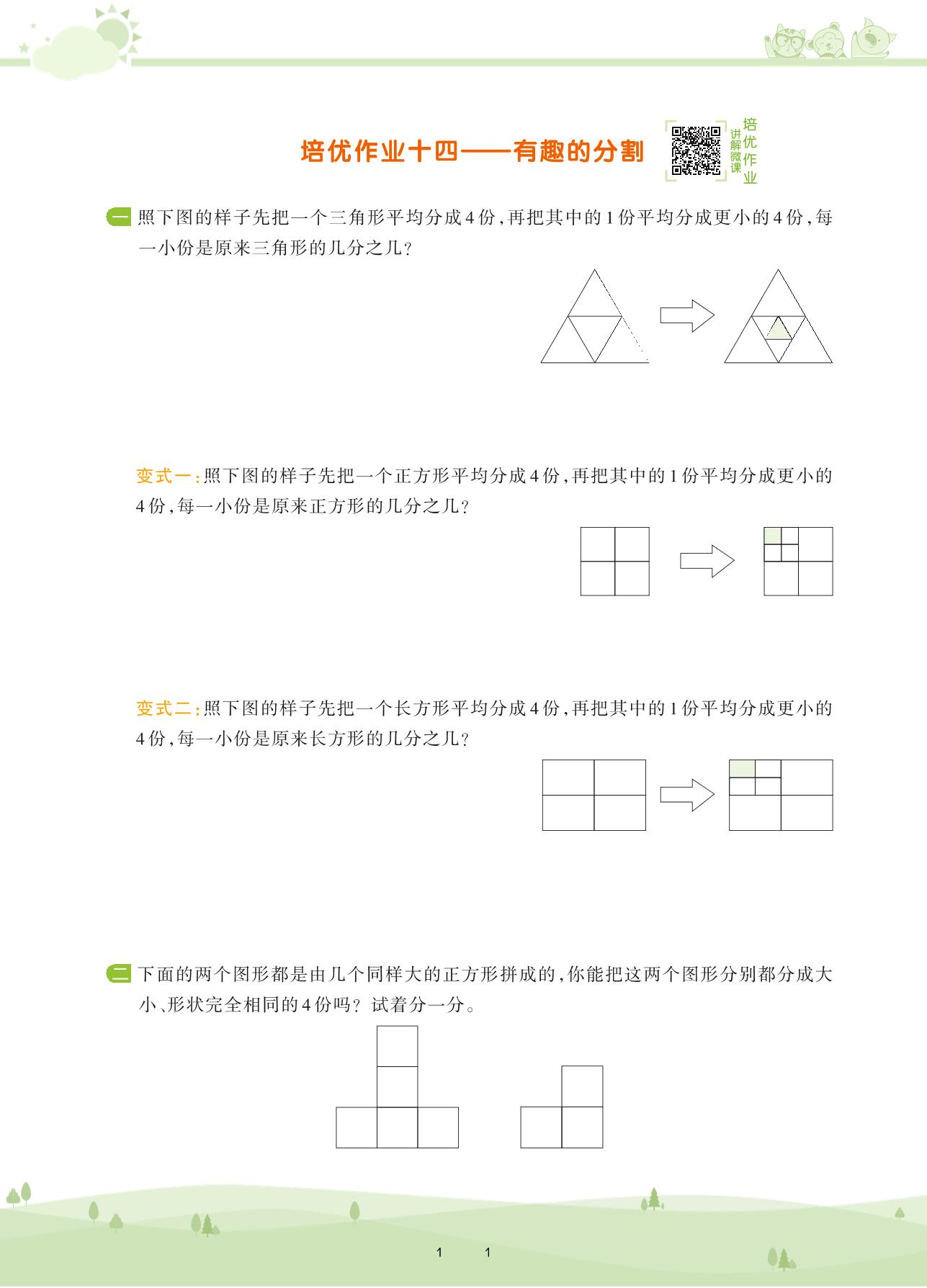 2021下册三年级数学苏教版 第七单元 分数的初步认识(二)——培优作业十四 有趣的分割