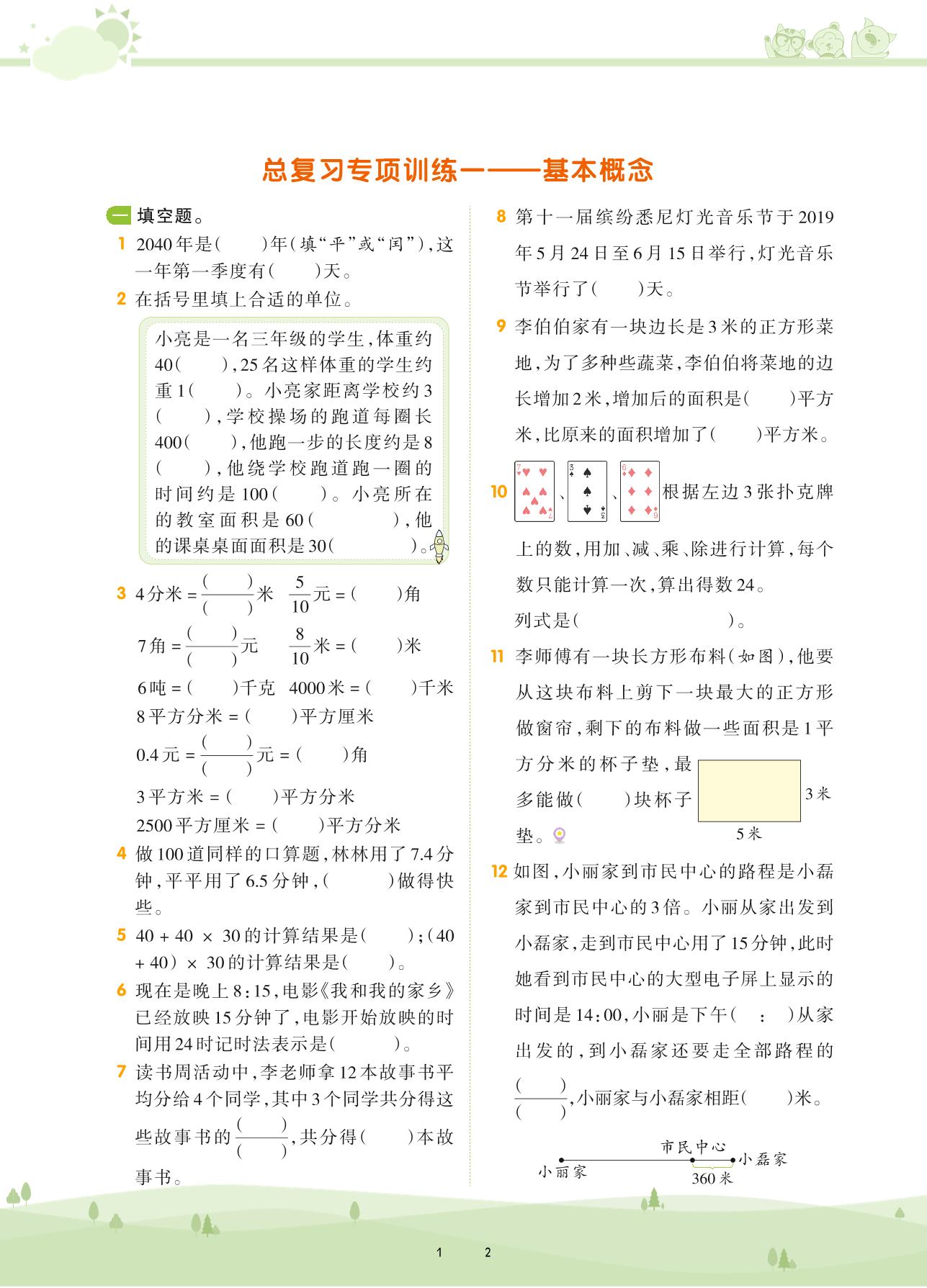 2021下册三年级数学苏教版 第十单元 期末复习——基本概念