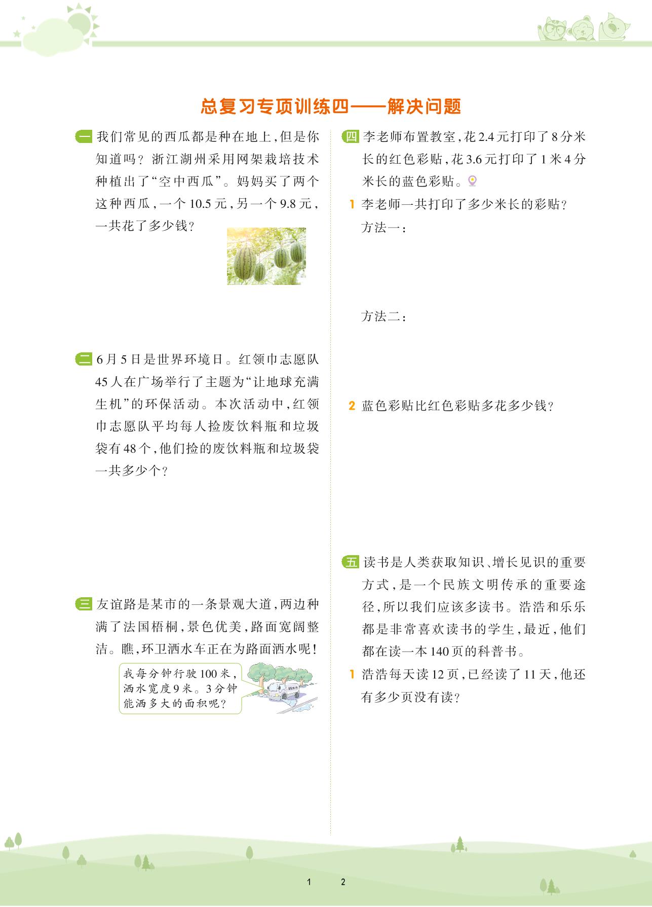 2021下册三年级数学苏教版 第十单元 期末复习——解决问题
