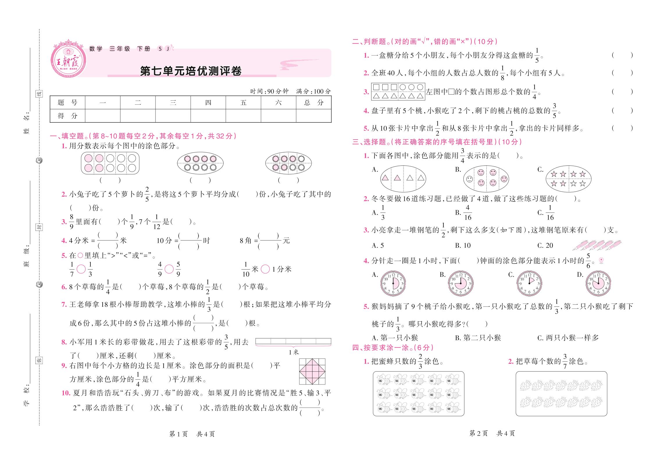 2021下册三年级数学苏教版 第七单元培优测评卷