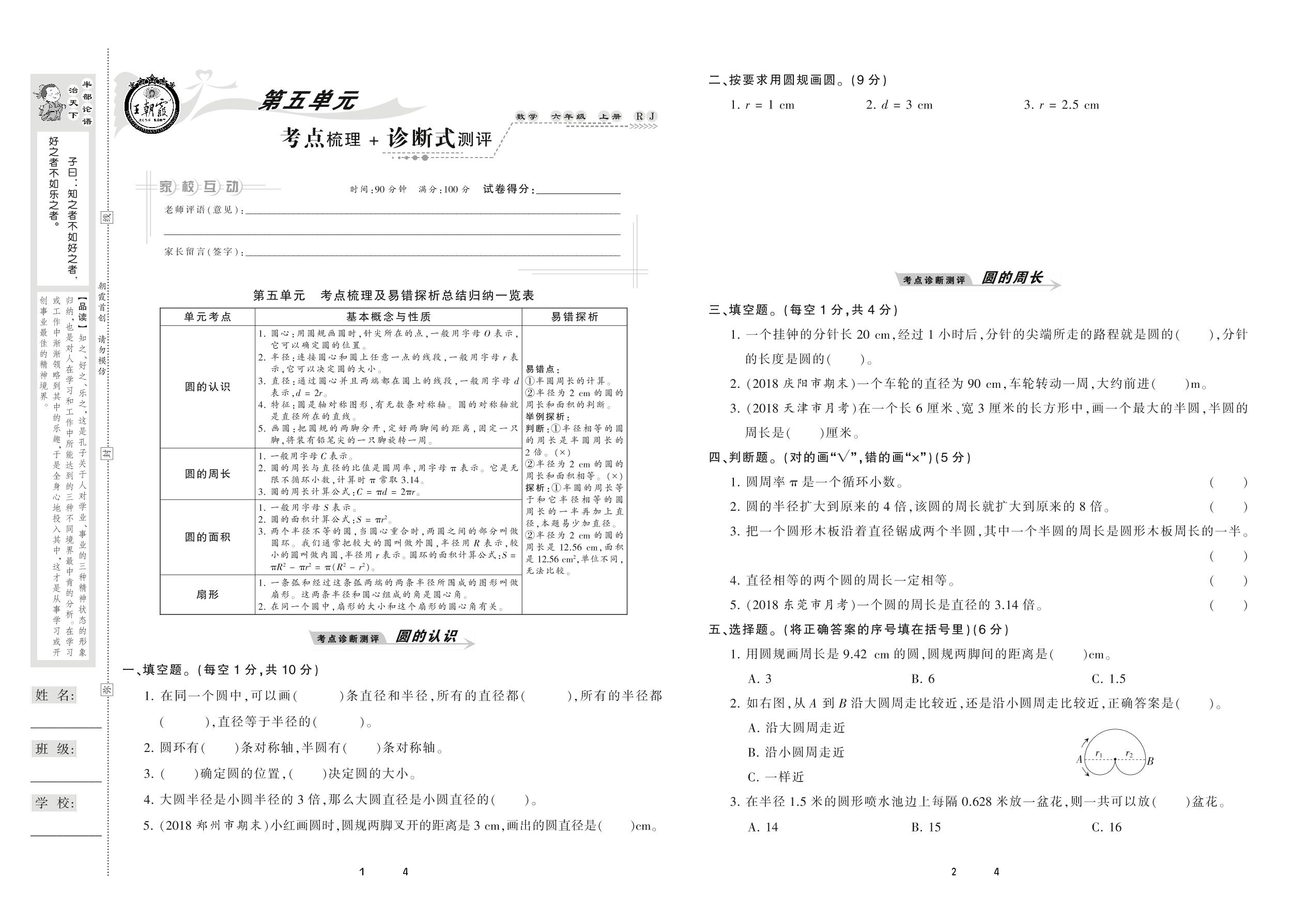 2020上册六年级数学人教版 第五单元 考点梳理+诊断式测评