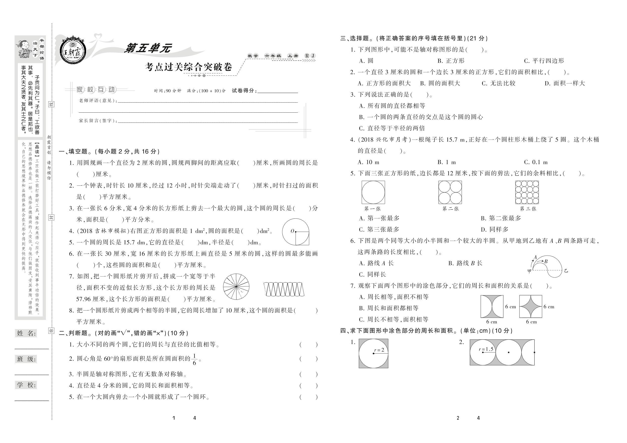 2020上册六年级数学人教版 第五单元 考点过关综合突破卷