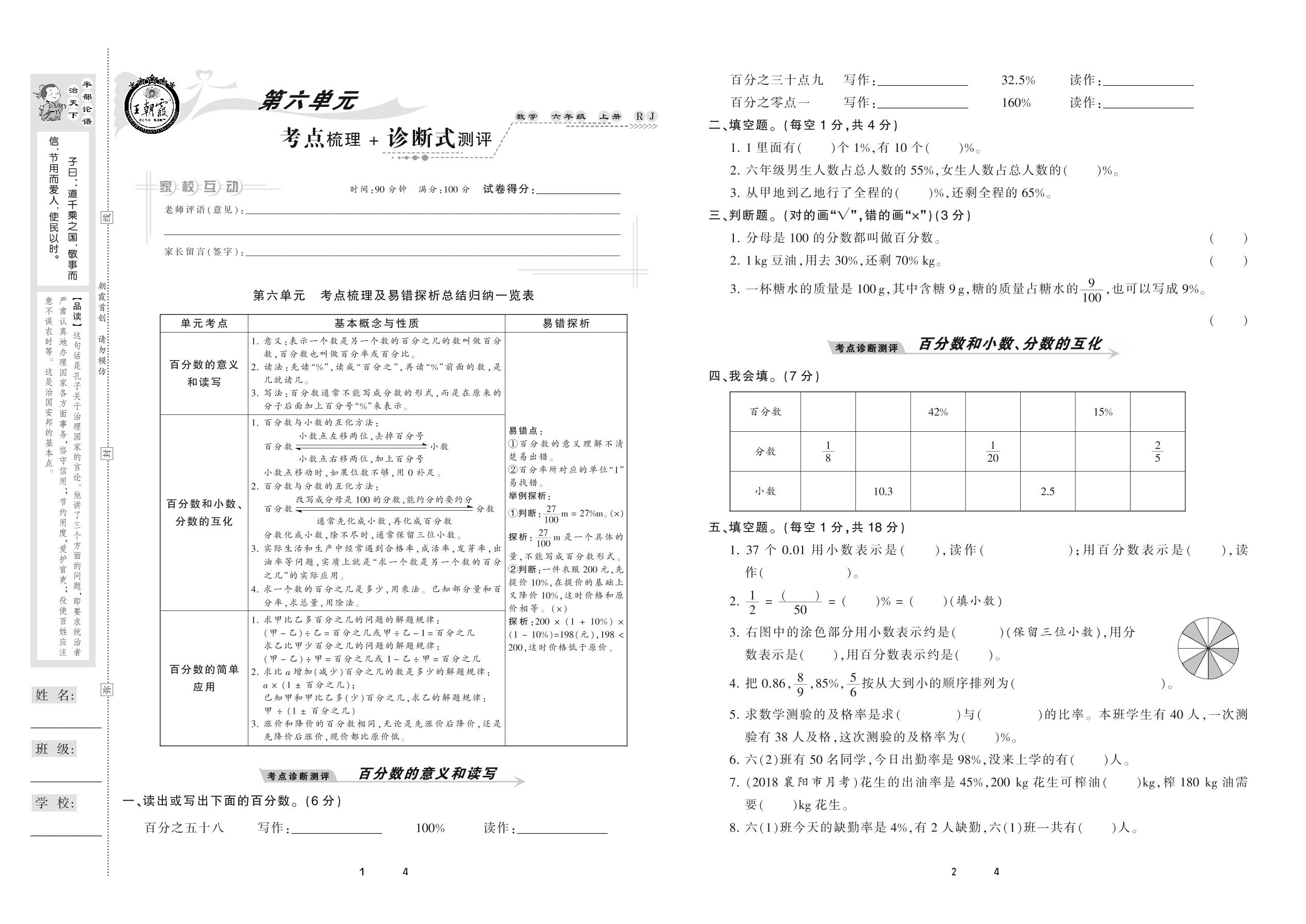 2020上册六年级数学人教版 第六单元 考点梳理+诊断式测评