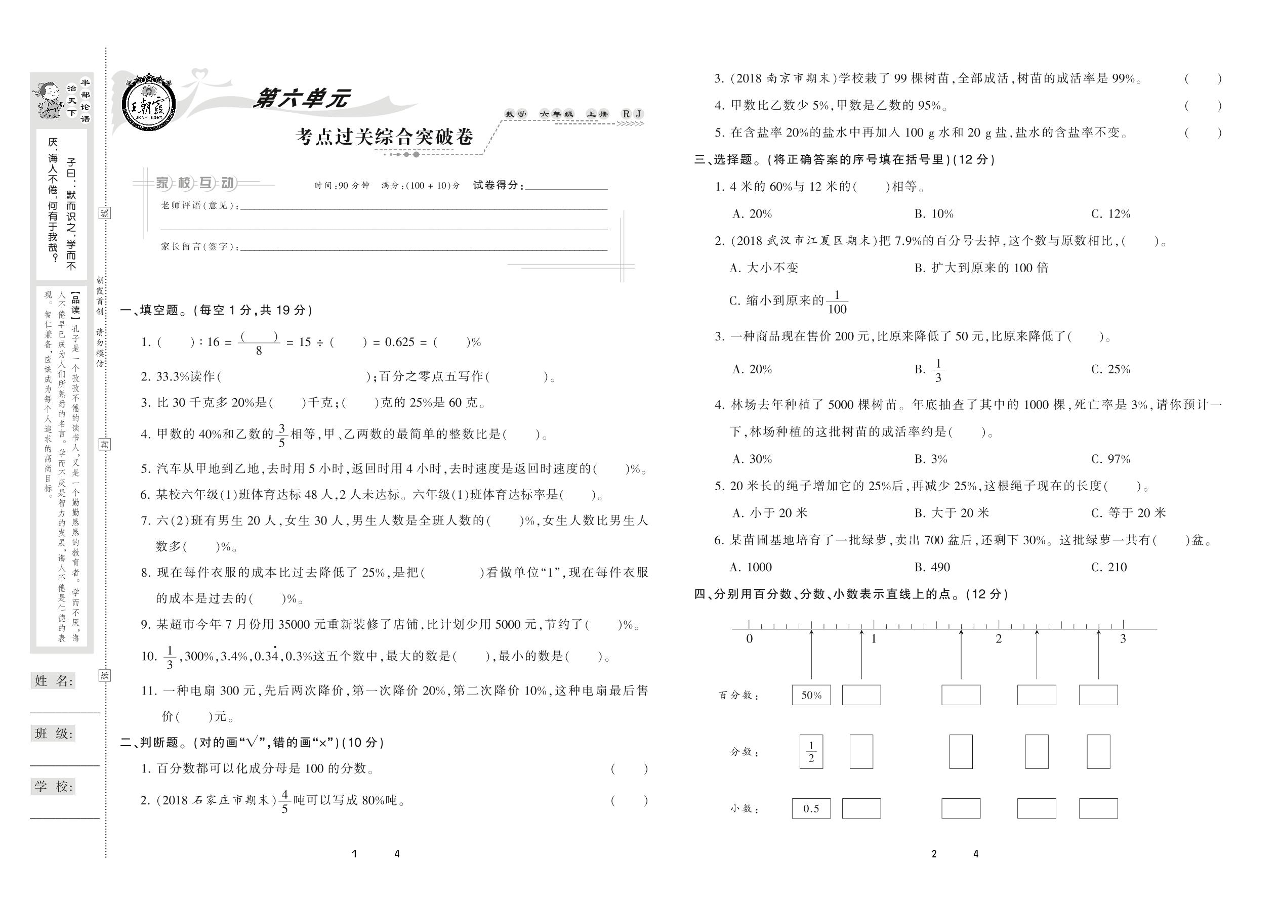 2020上册六年级数学人教版 第六单元 考点过关综合突破卷