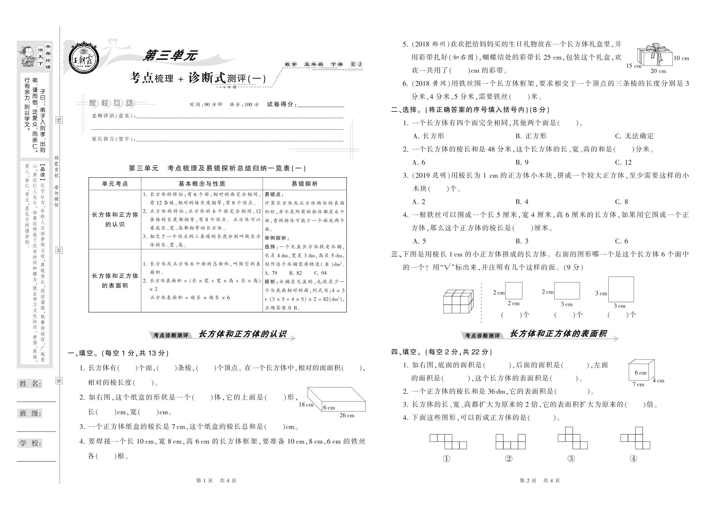 2021下册五年级数学人教版 第三单元 考点梳理+诊断式测评(一)