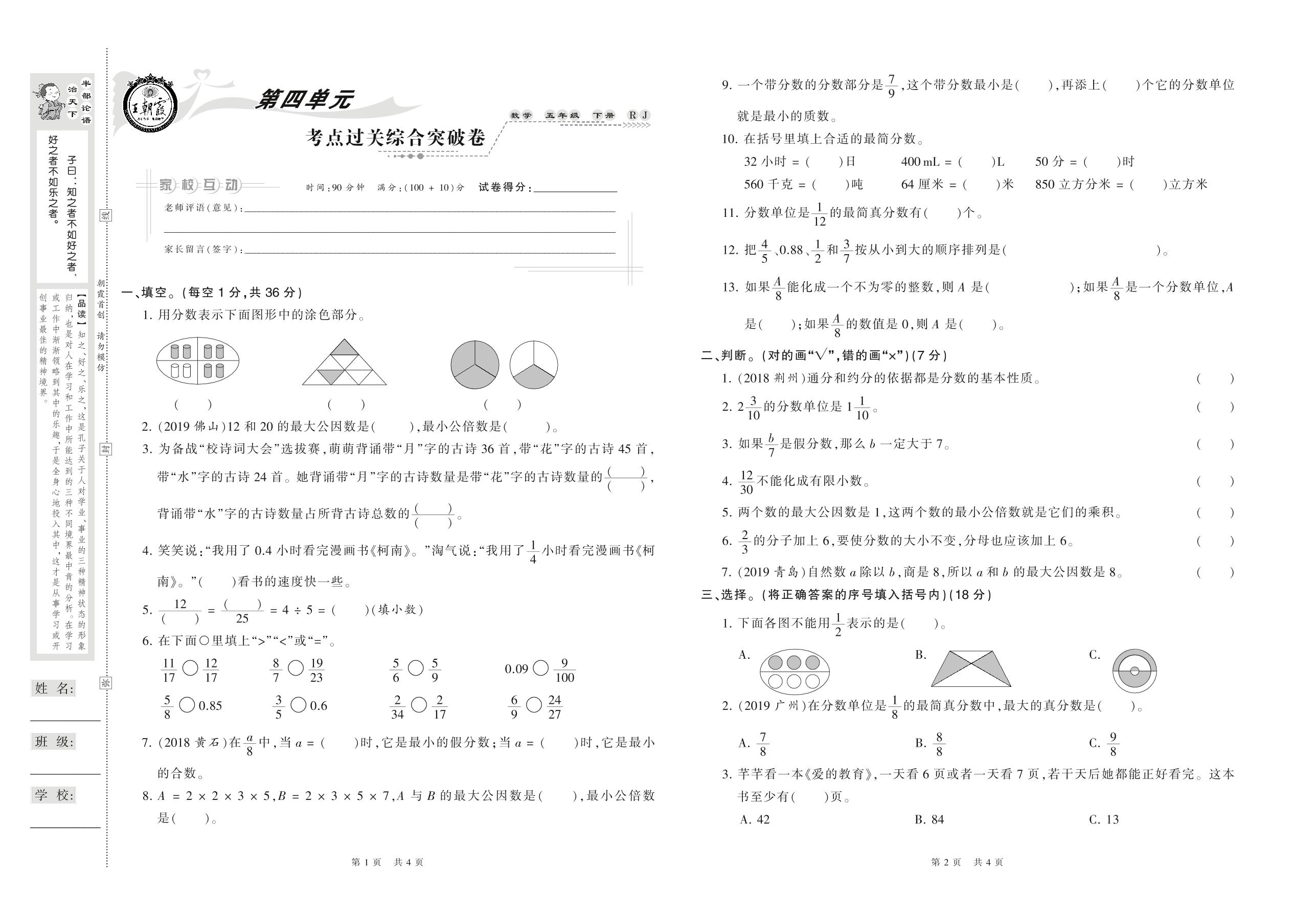2021下册五年级数学人教版 第四单元 考点过关综合突破卷