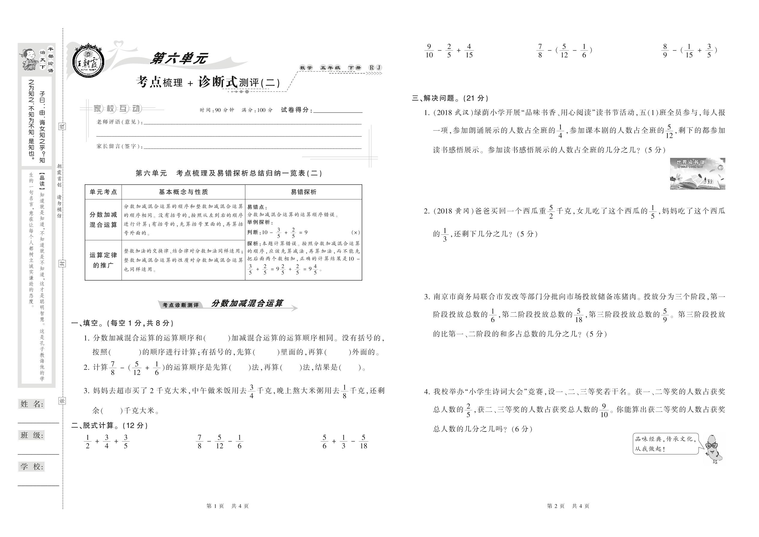 2021下册五年级数学人教版 第六单元 考点梳理+诊断式测评(二)
