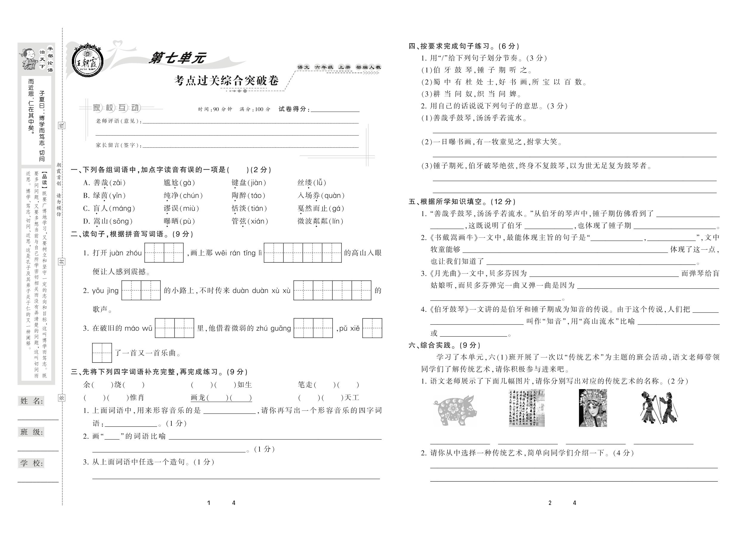 2020上册六年级语文人教版 第七单元 考点过关综合突破卷