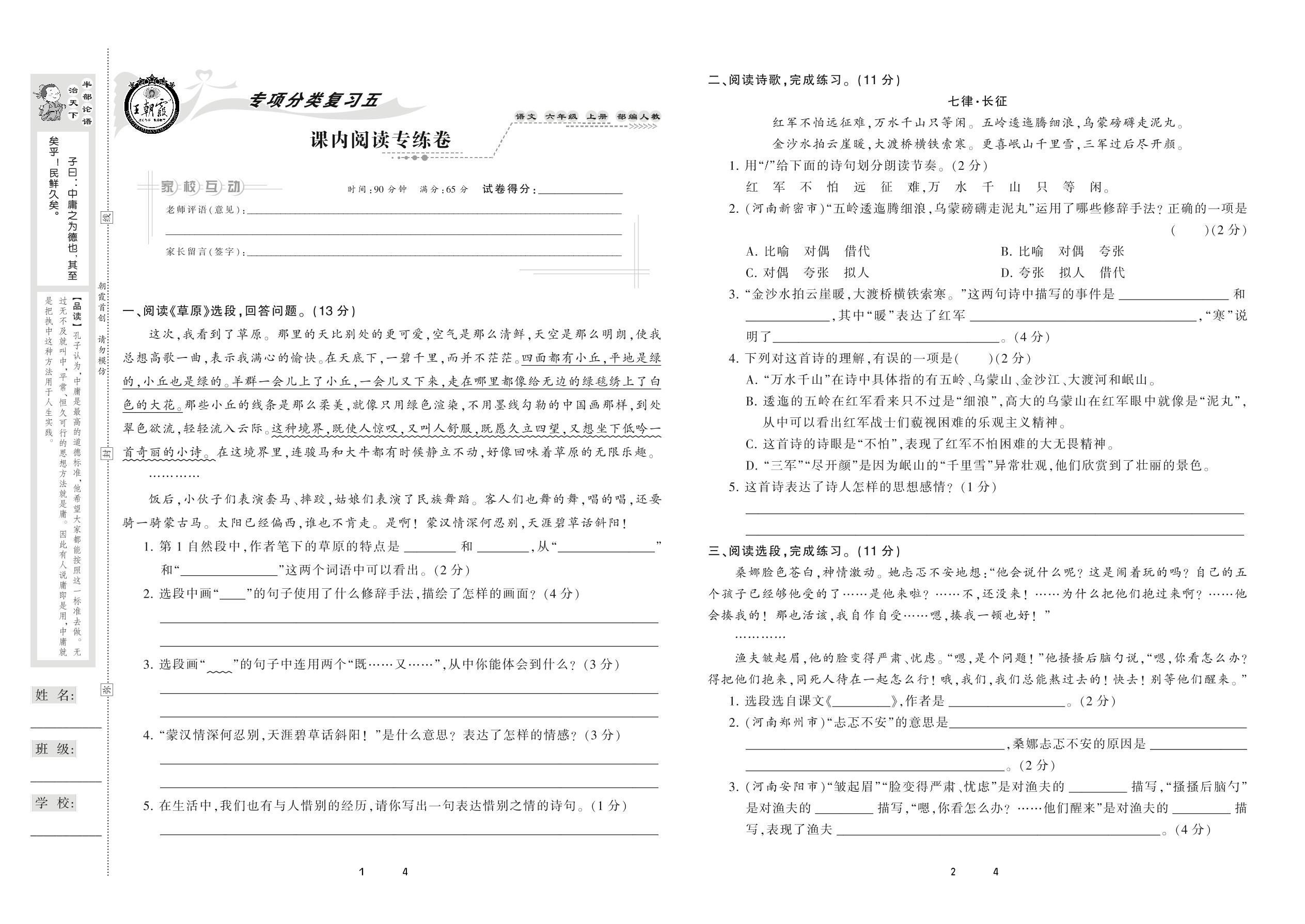 六年级语文人教版上册专项卷