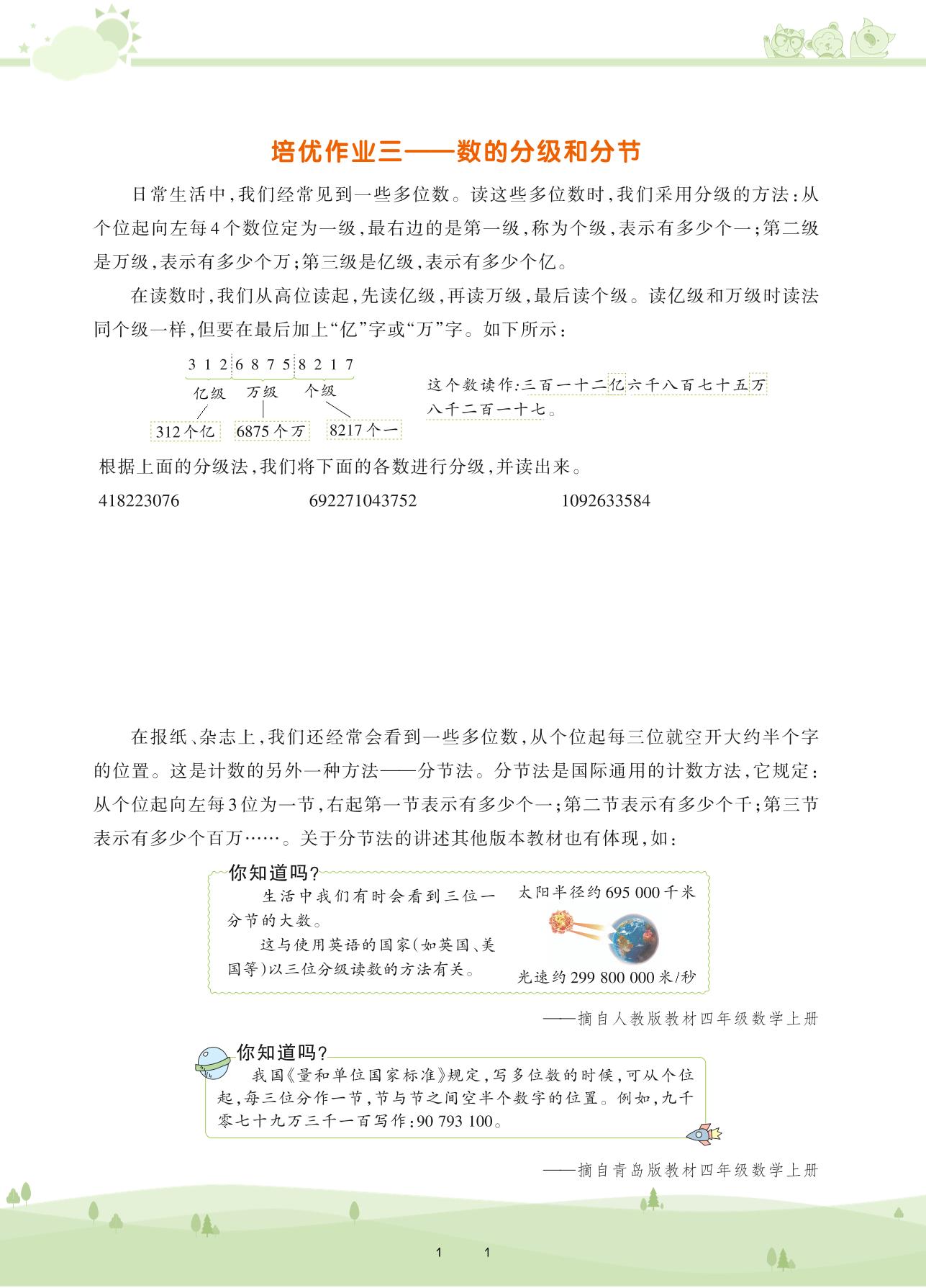 2021下册四年级数学苏教版 第二单元 认识多位数——培优作业三 数的分级和分节