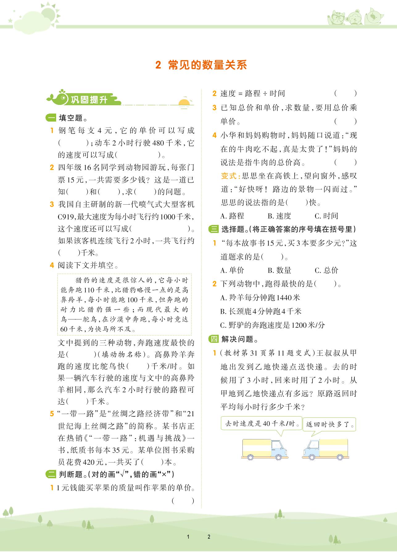 2021下册四年级数学苏教版 第三单元 三位数乘两位数——2 常见的数量关系
