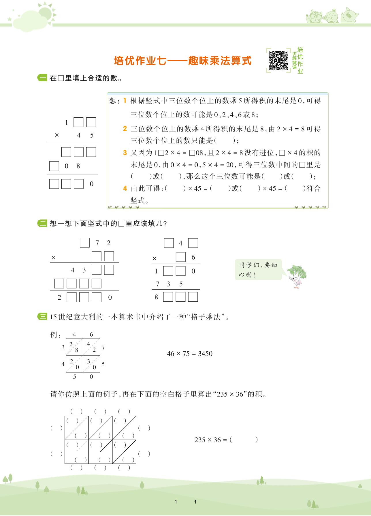 2021下册四年级数学苏教版 第三单元 三位数乘两位数——培优作业七 趣味乘法算式