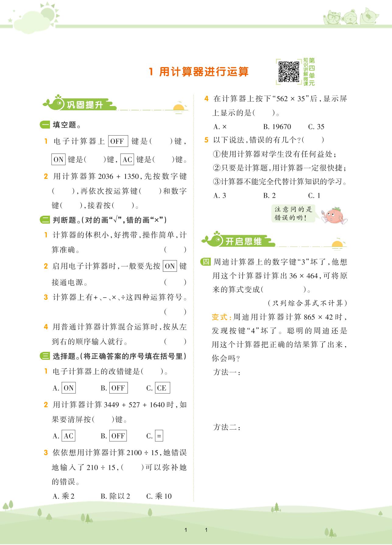 2021下册四年级数学苏教版 第四单元 用计算器计算——1 用计算器进行运算