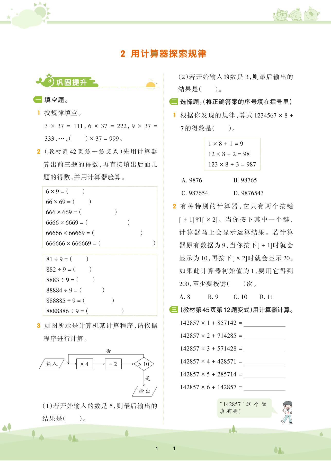 2021下册四年级数学苏教版 第四单元 用计算器计算——2 用计算器探索规律