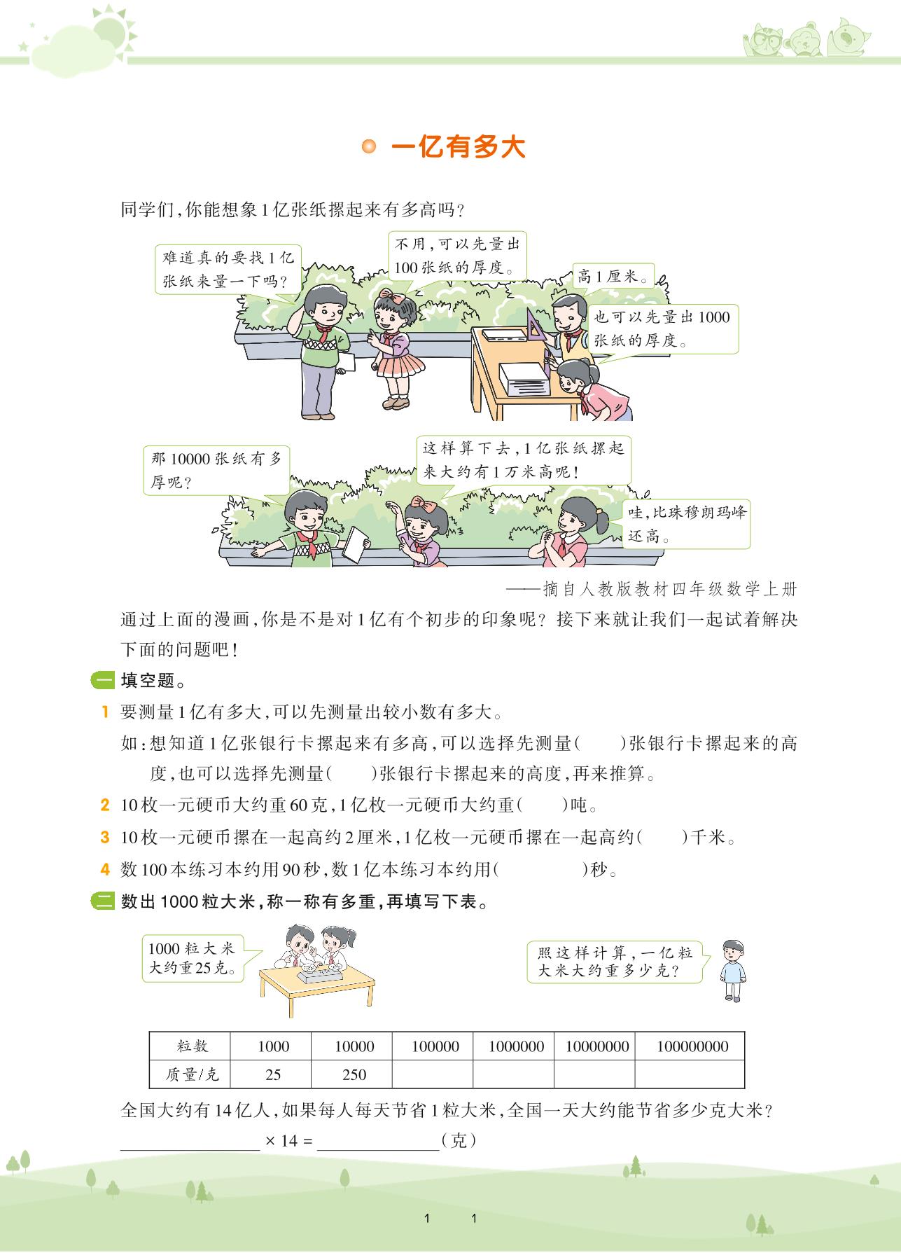 2021下册四年级数学苏教版 第四单元 用计算器计算——一亿有多大