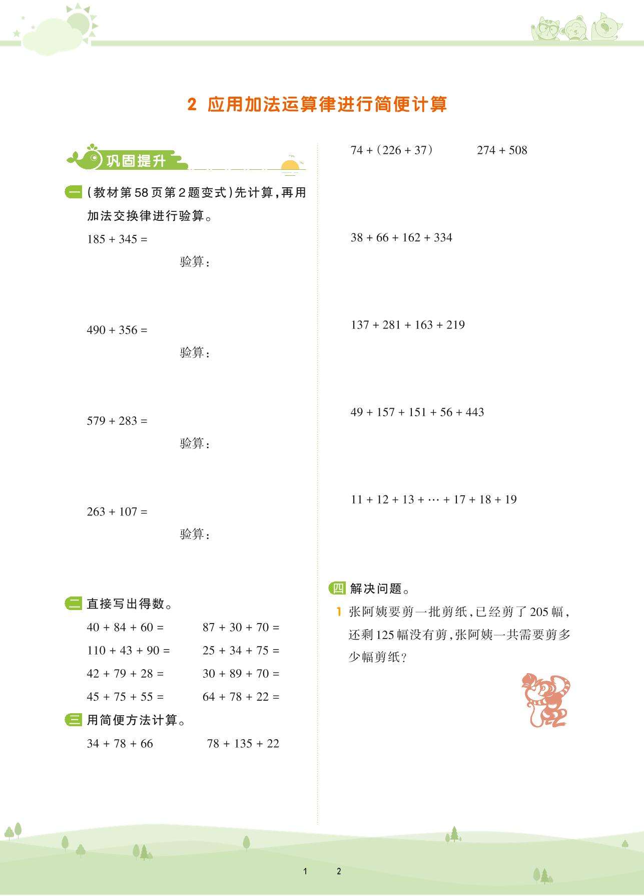2021下册四年级数学苏教版 第六单元 运算律——2 应用加法运算律进行简便计算