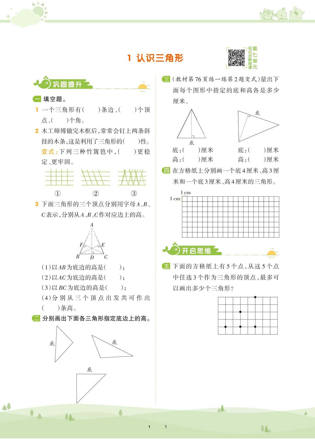 2021下册四年级数学苏教版 第七单元 三角形、平行四边形和梯形——1 认识三角形