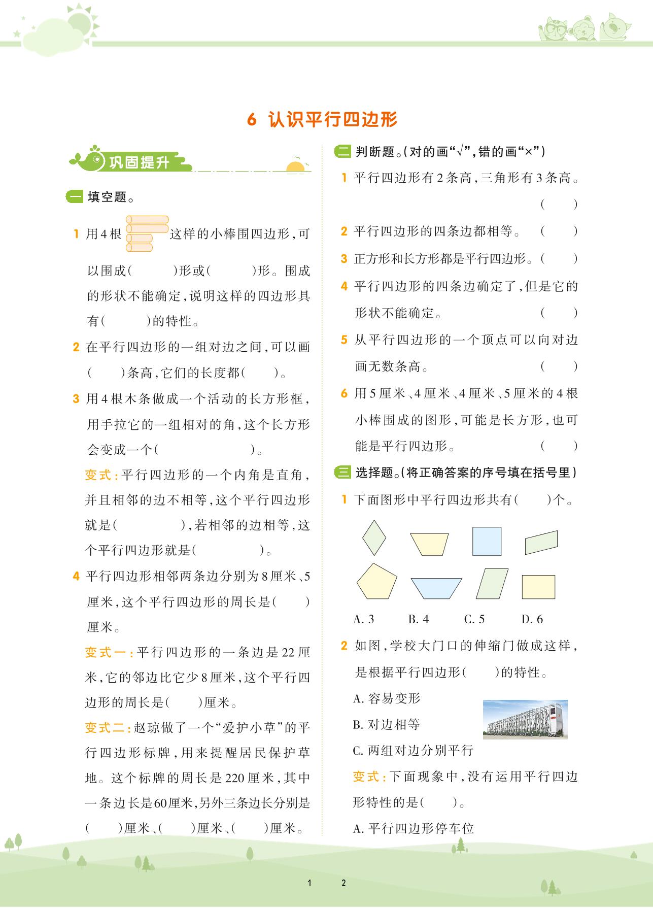 2021下册四年级数学苏教版 第七单元 三角形、平行四边形和梯形——6 认识平行四边形