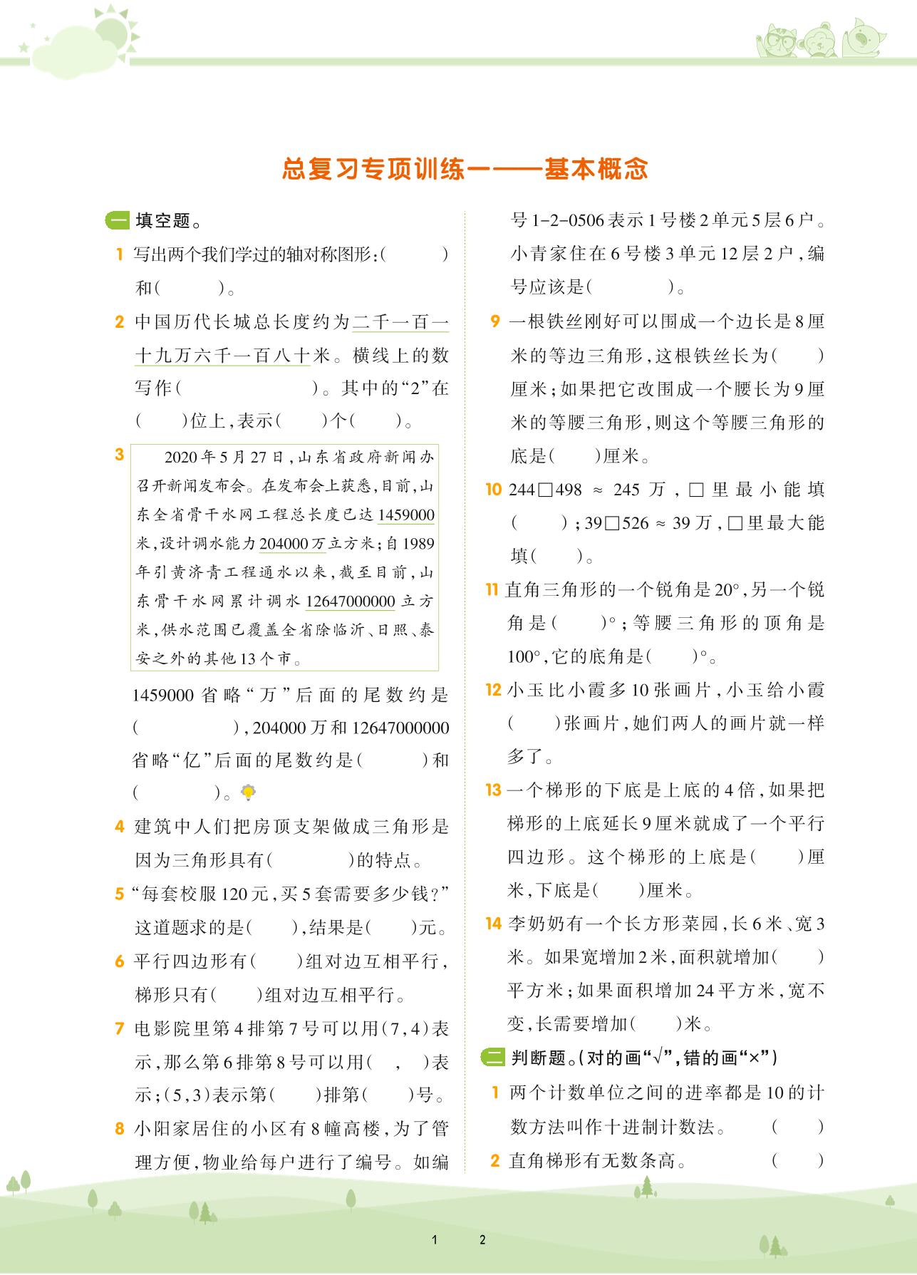2021下册四年级数学苏教版 第九单元 整理与复习——基本概念