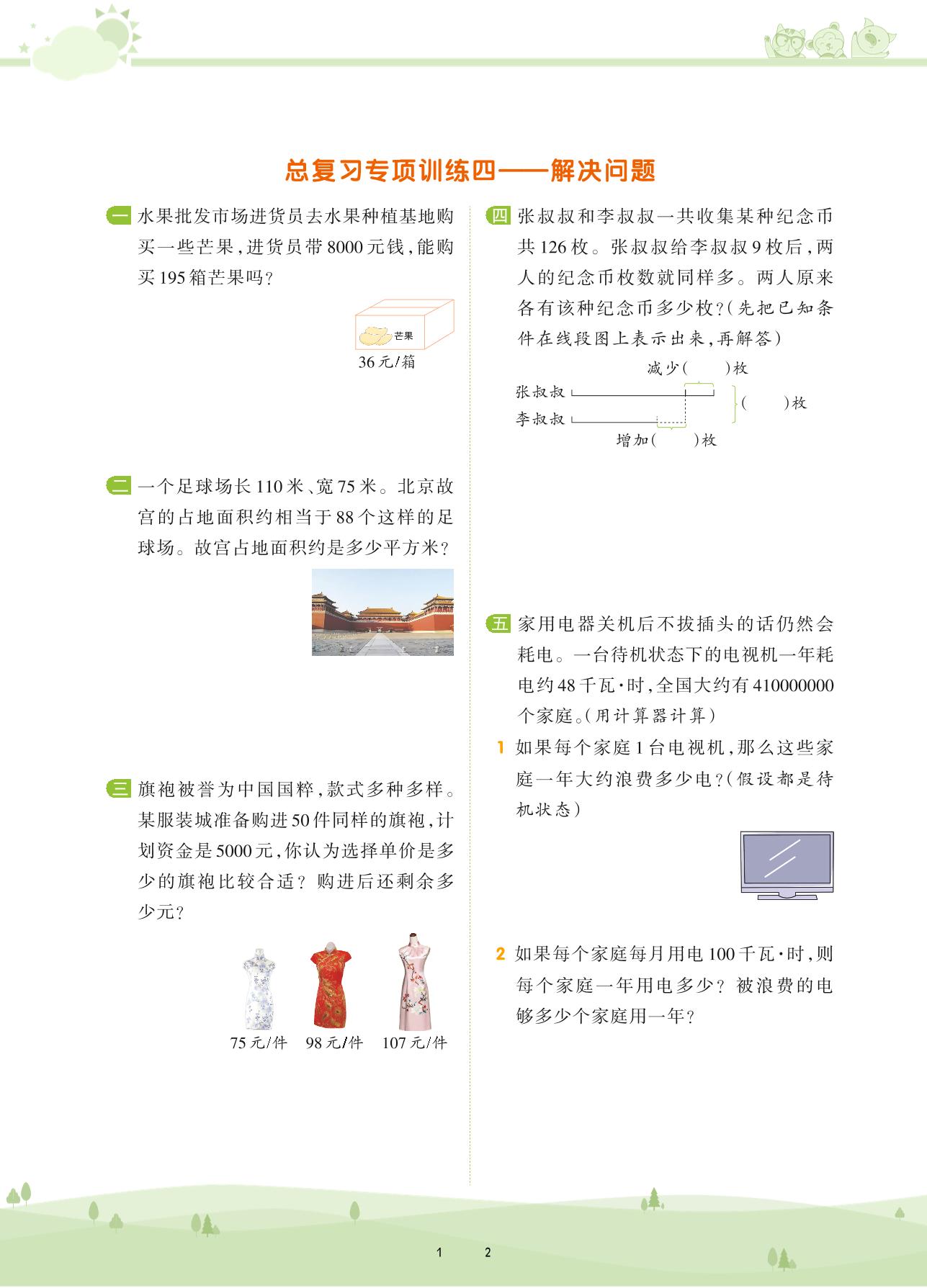 2021下册四年级数学苏教版 第九单元 整理与复习——解决问题