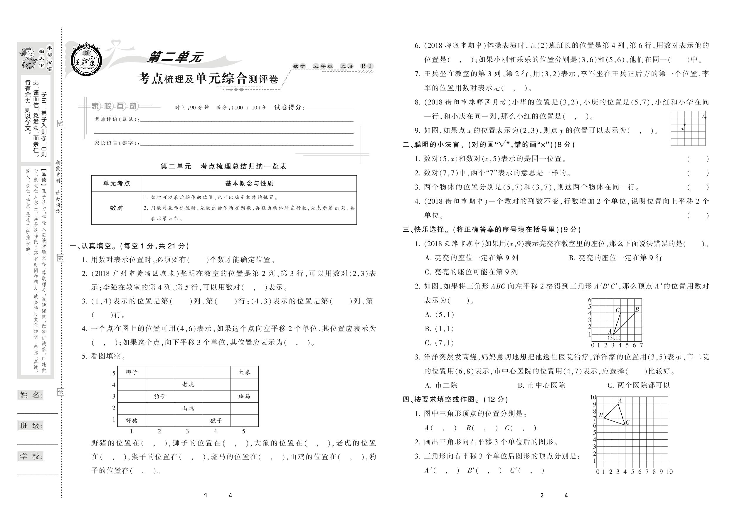 2020上册五年级数学人教版 第二单元 考点梳理及单元综合测评卷