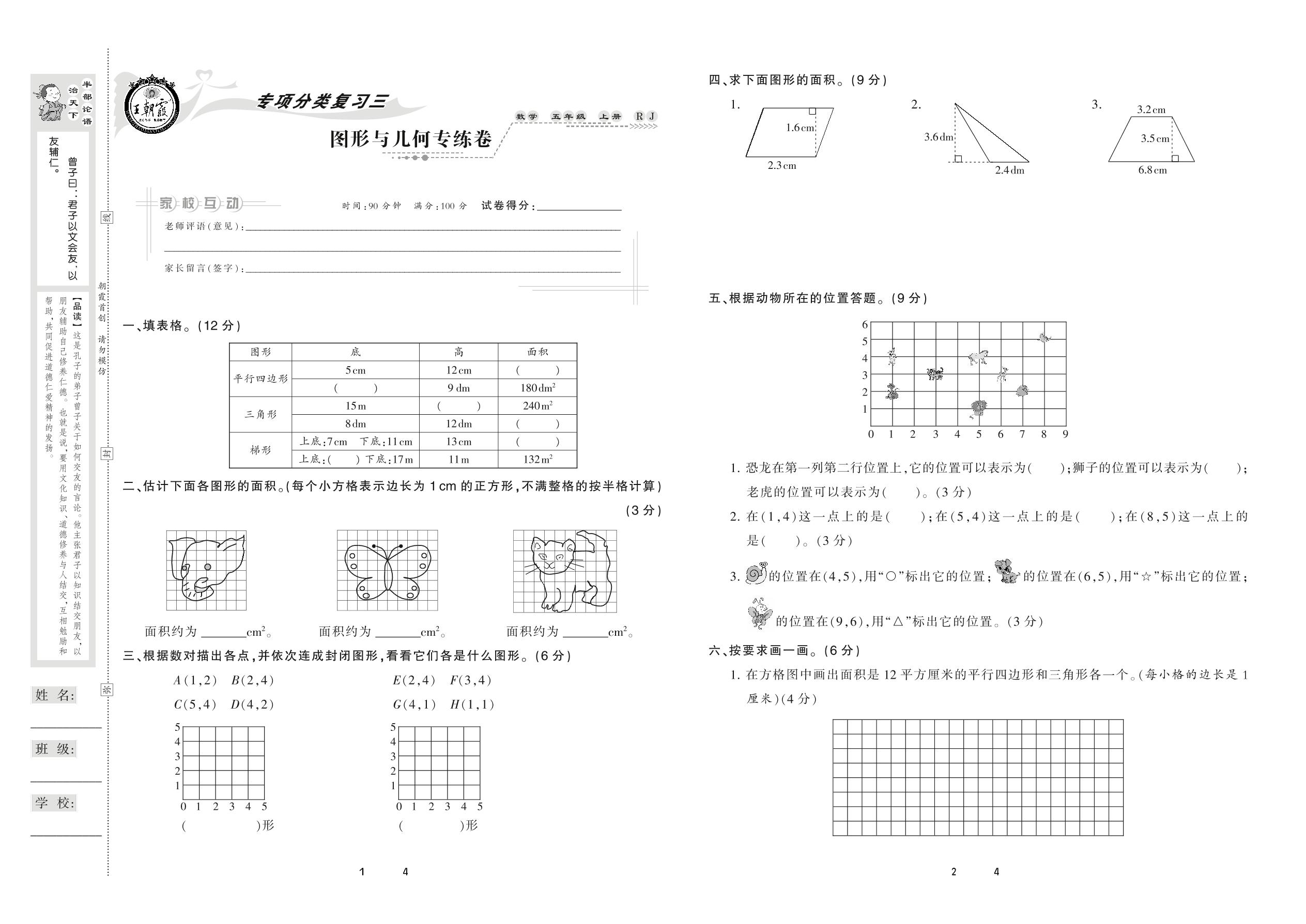 2020上册五年级数学人教版 图形与几何专练卷