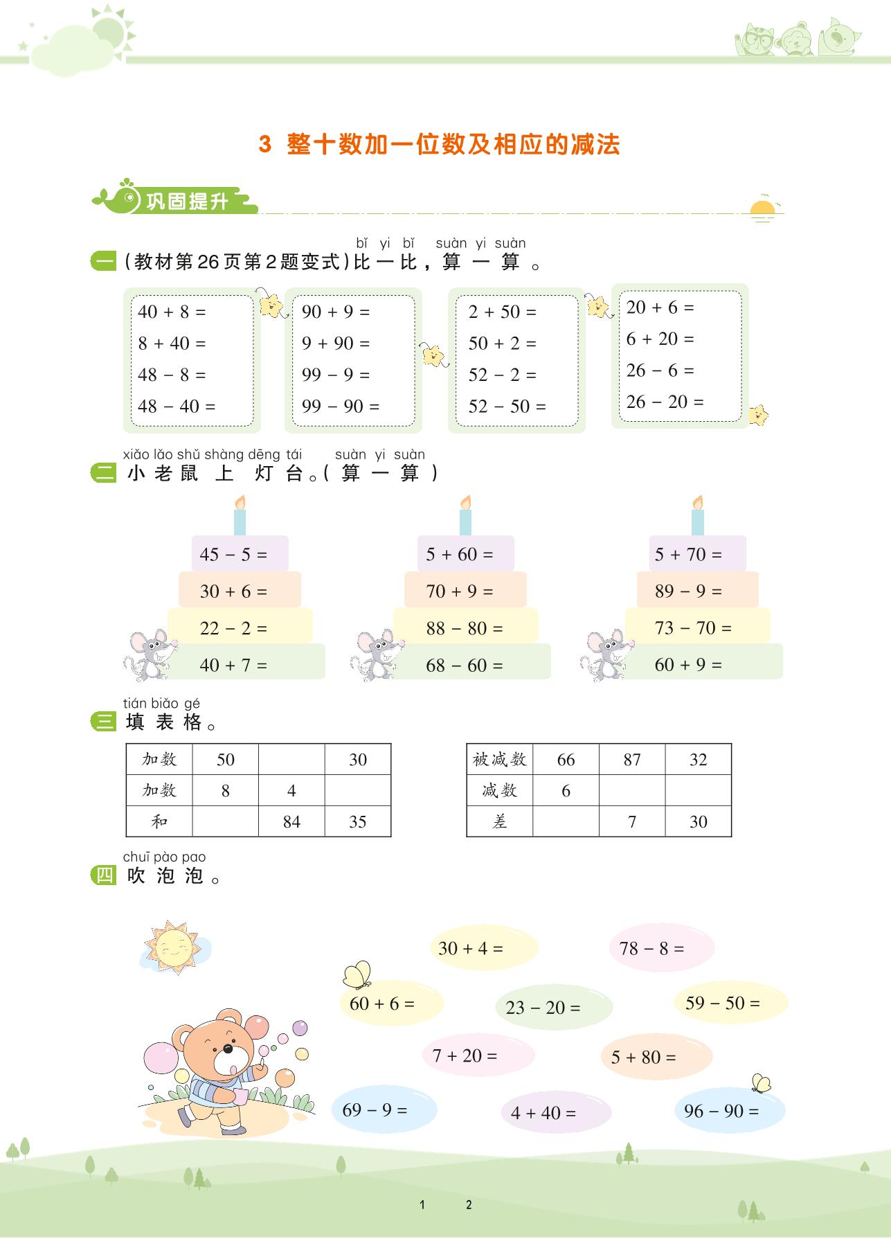 2021下册一年级数学苏教版 第三单元 认识100以内的数——3 整十数加一位数及相应的减法