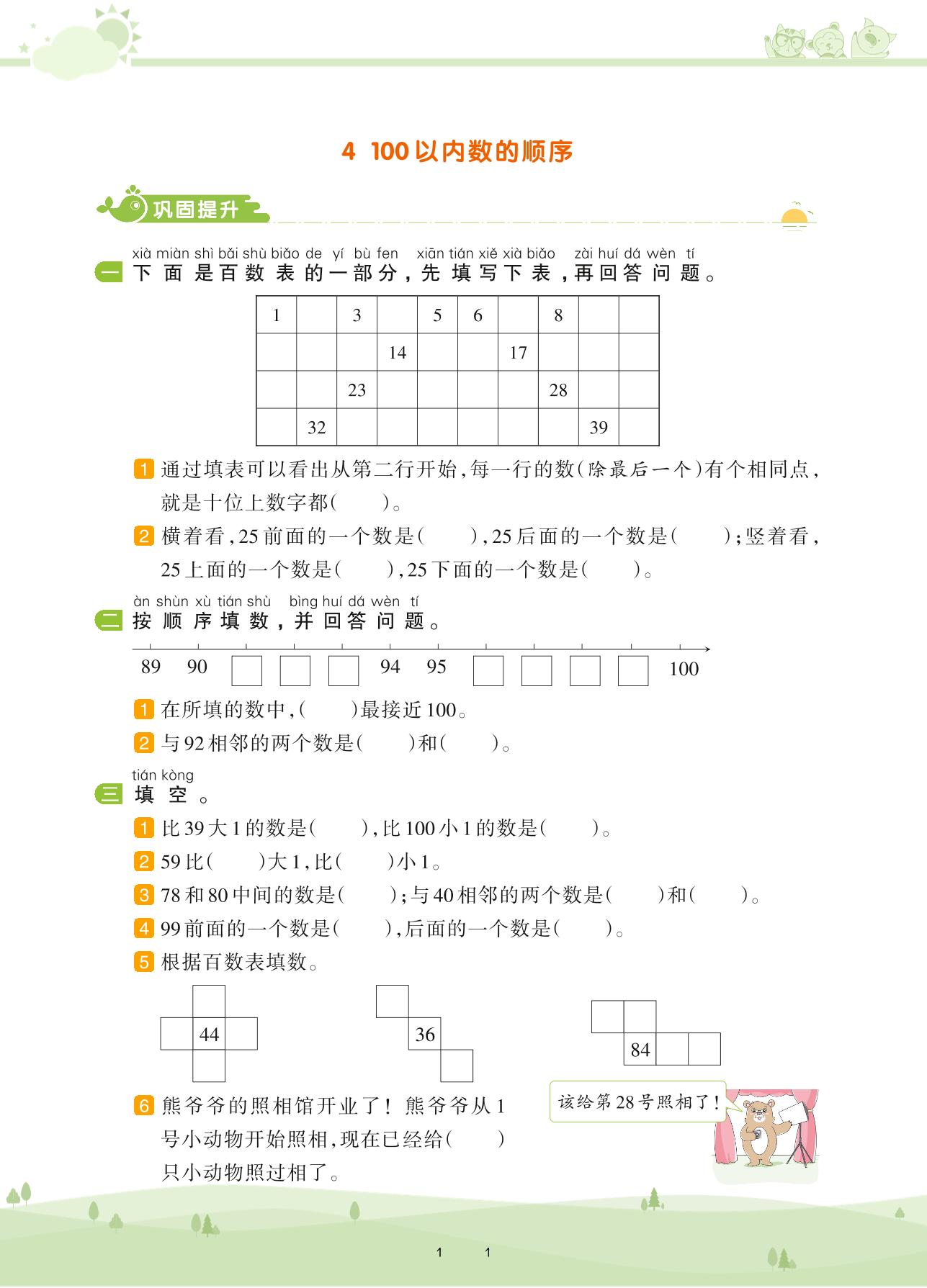 2021下册一年级数学苏教版 第三单元 认识100以内的数——4 100以内数的顺序