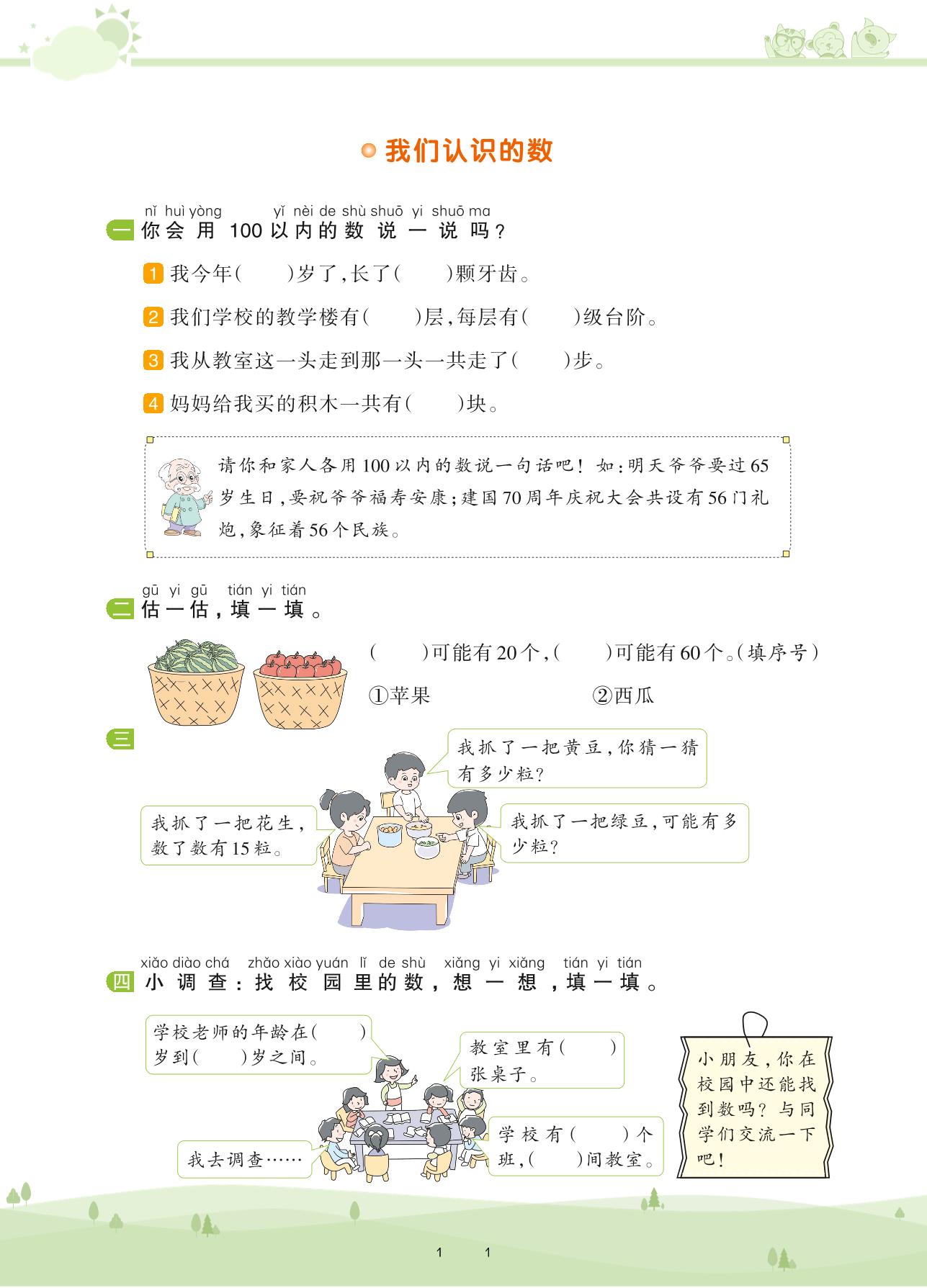 2021下册一年级数学苏教版 第三单元 认识100以内的数——我们认识的数