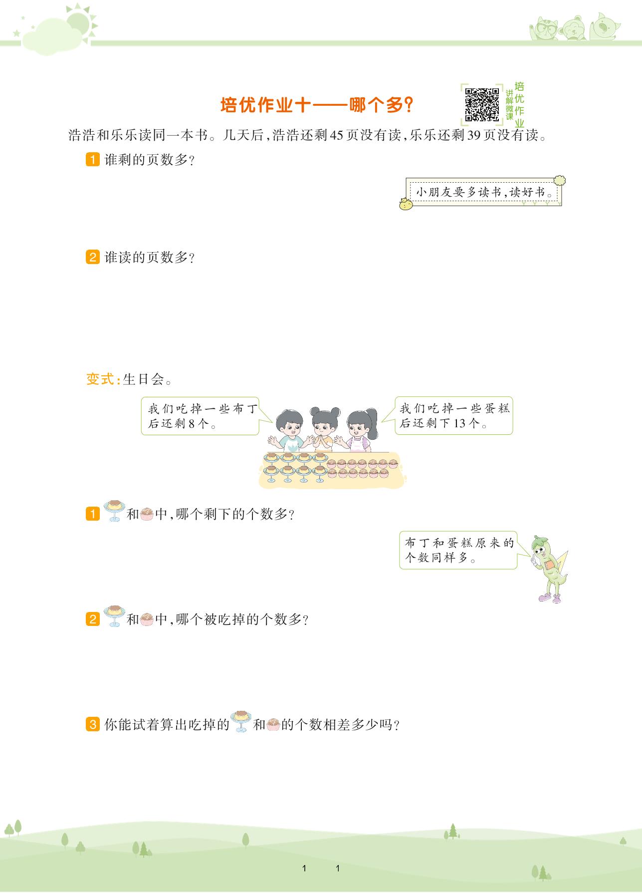 2021下册一年级数学苏教版 第四单元 100以内的加法和减法(一)——培优作业十 哪个多?