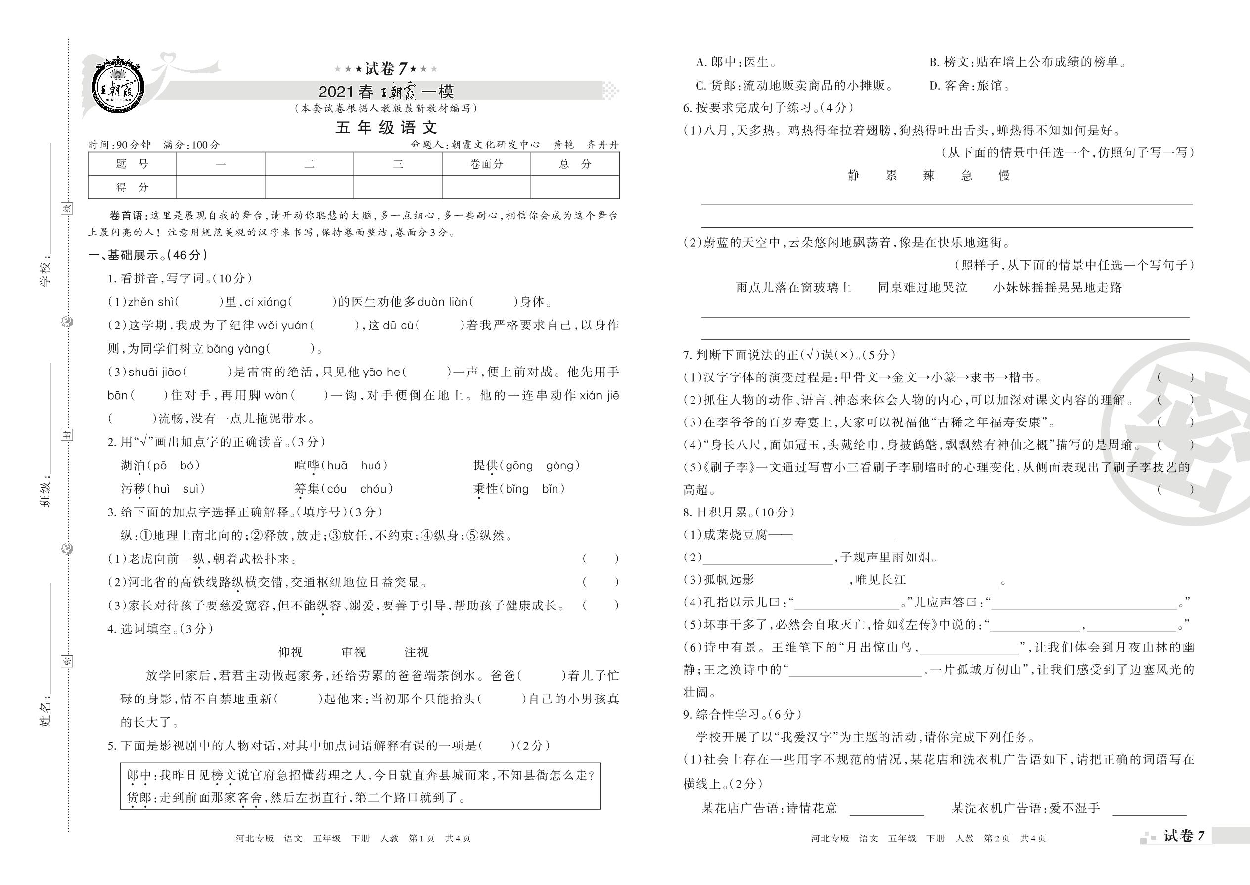 王朝霞期末模拟卷五年级下册语文(人教版)_R210801183054【7】