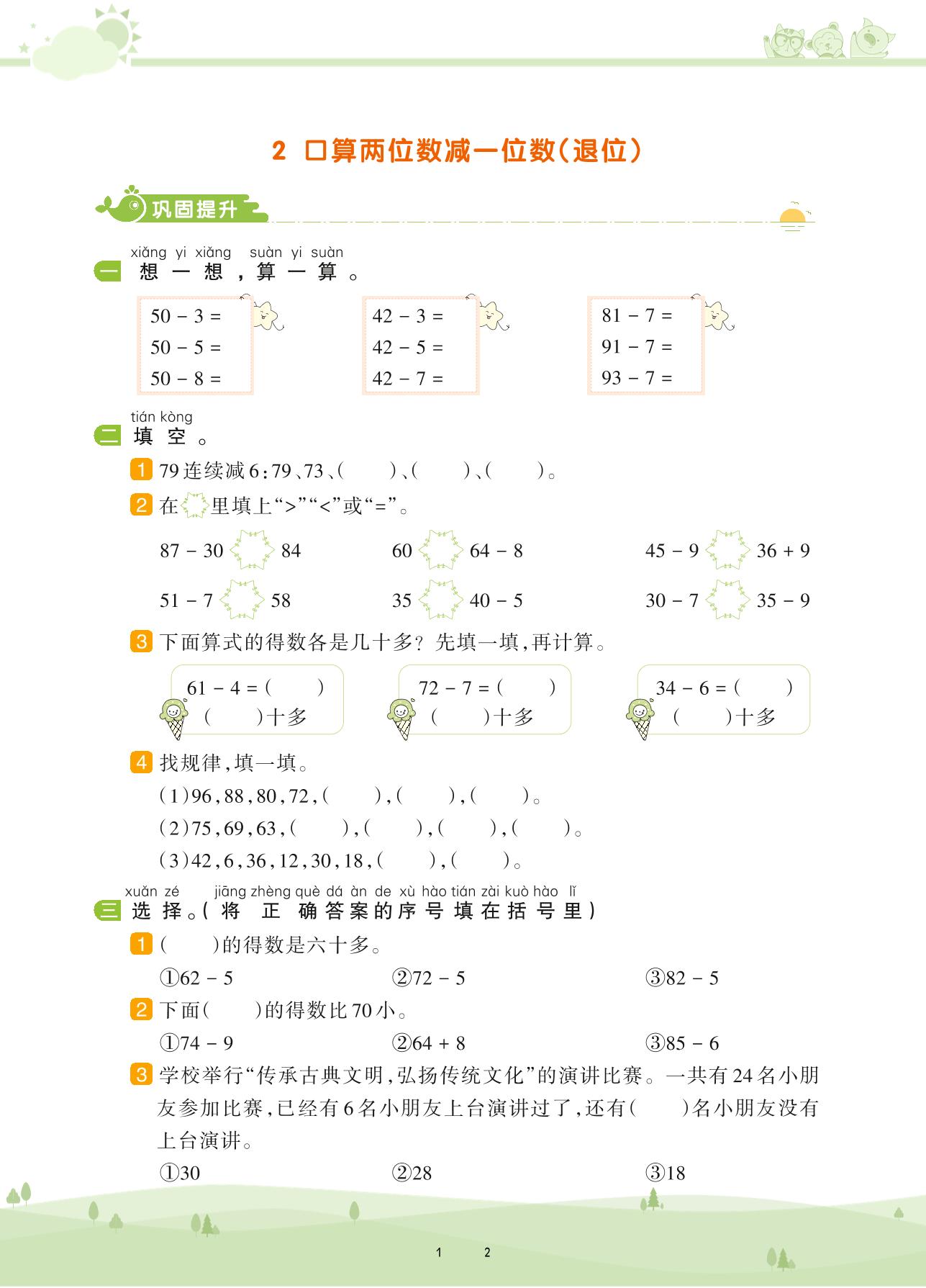 2021下册一年级数学苏教版 第六单元 100以内的加法和减法(二)——2 口算两位数减一位数(退位)