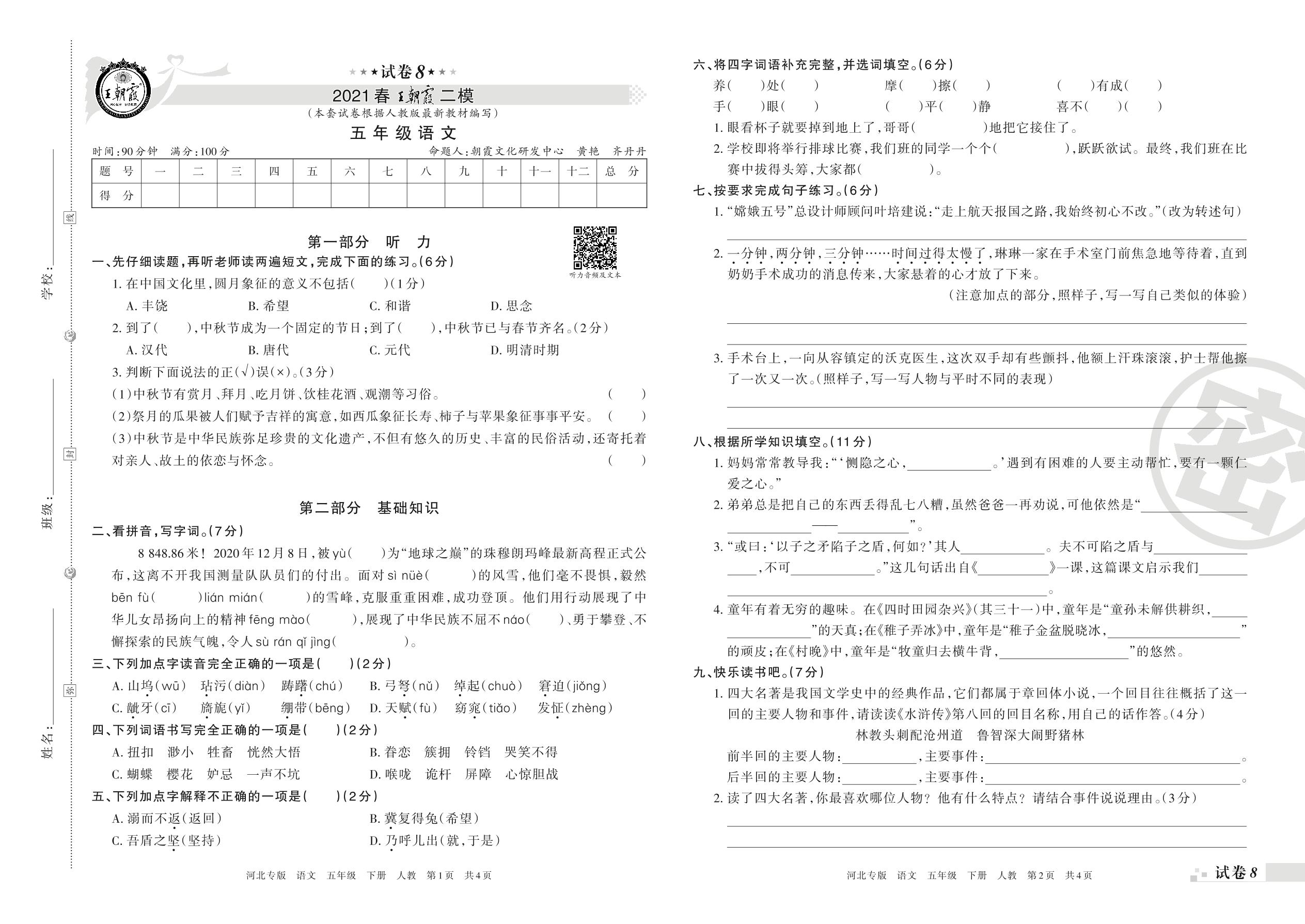 王朝霞期末模拟卷五年级下册语文(人教版)_R210801183101【8】