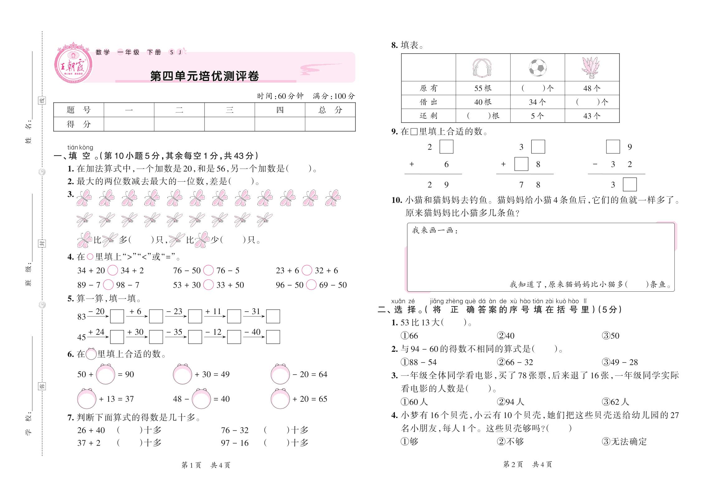 一年级数学苏教版下册单元卷