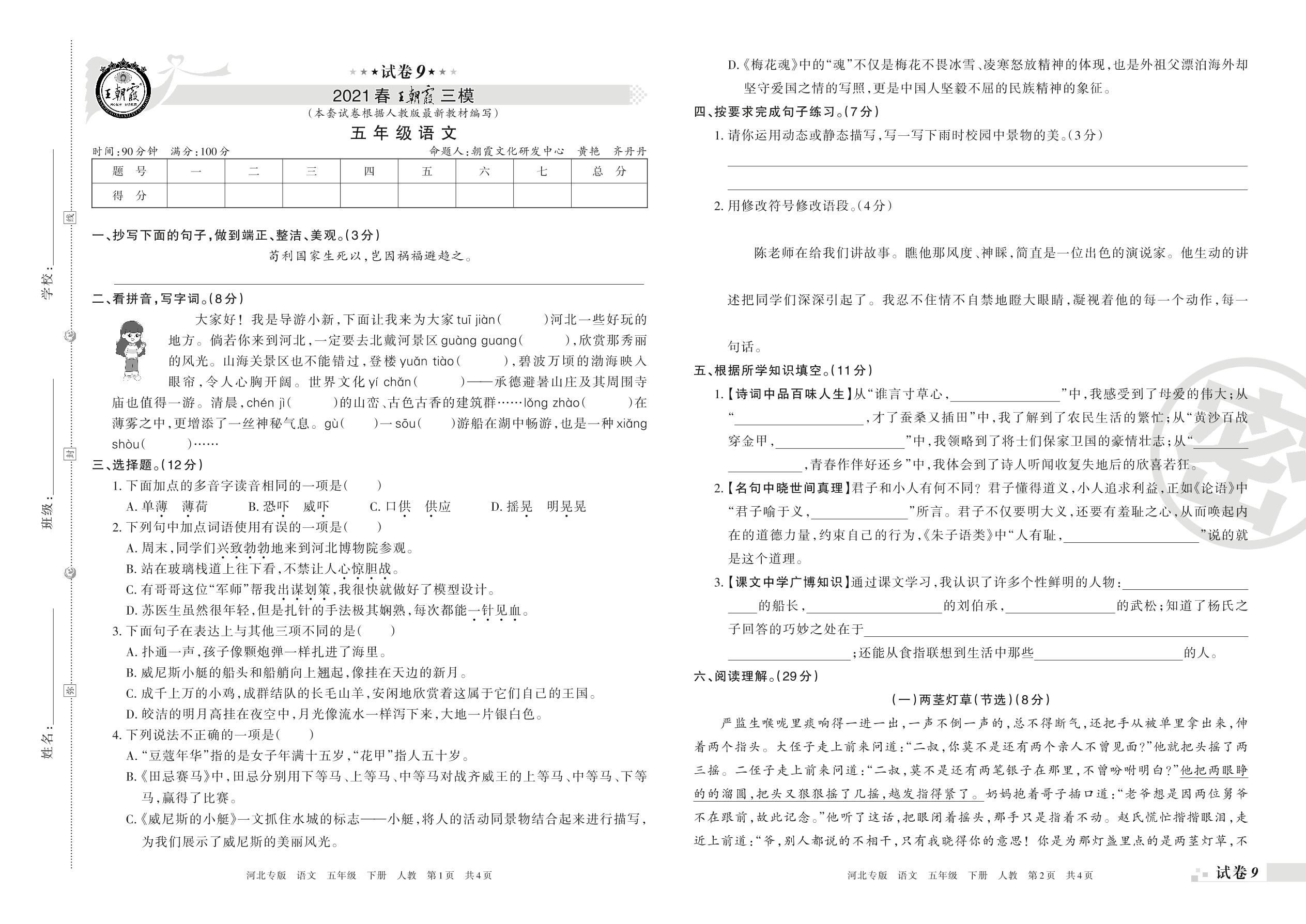 王朝霞期末模拟卷五年级下册语文(人教版)_R210801183108【9】