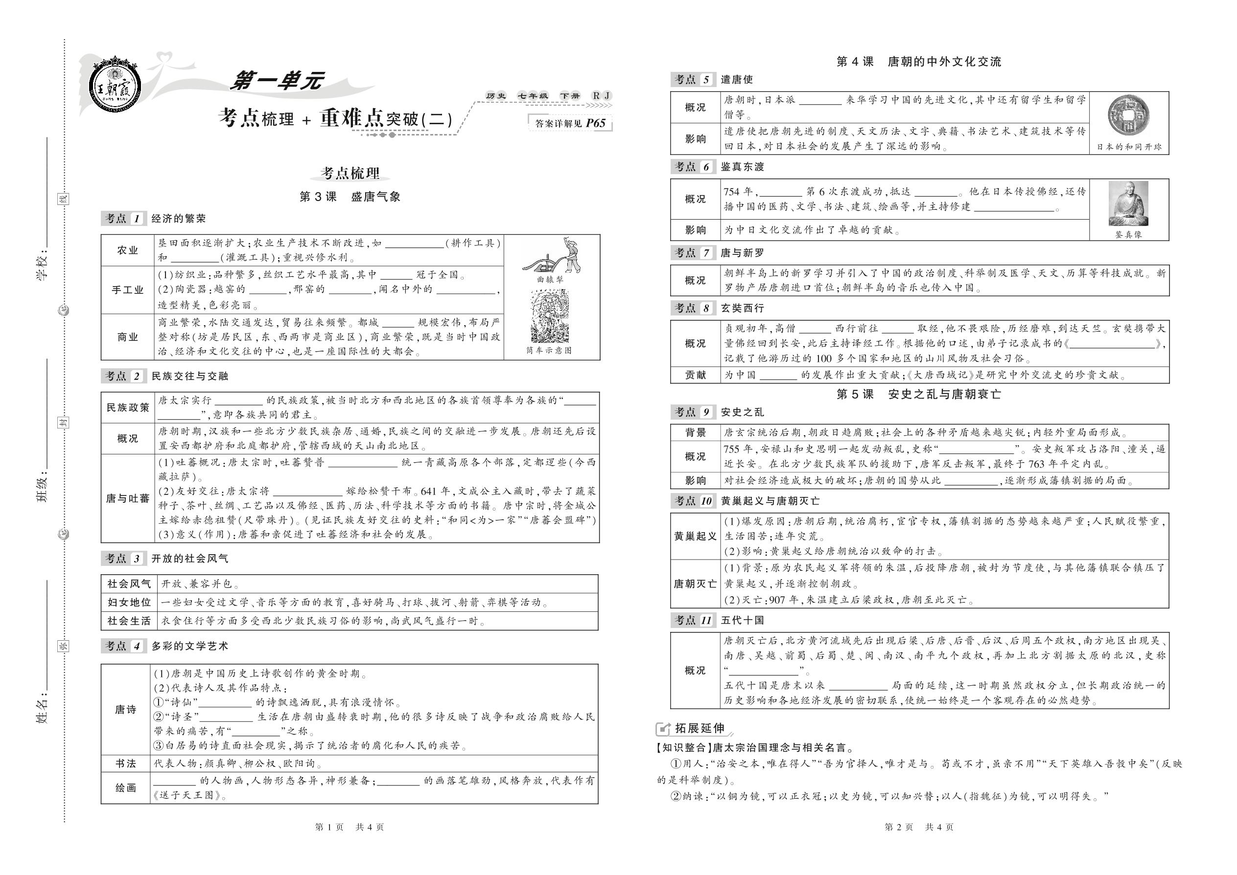2021下册七年级历史人教版 第一单元 考点梳理+重难点突破(二)