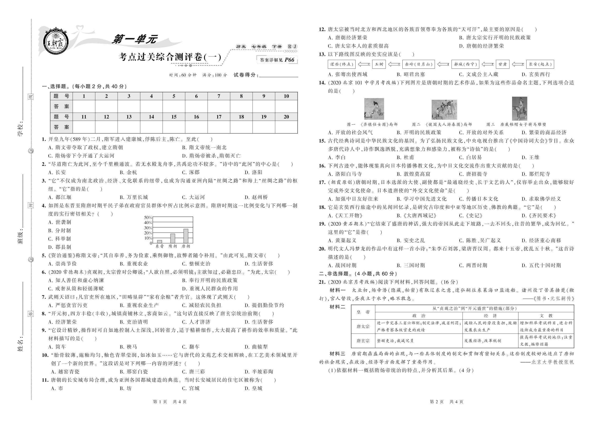 2021下册七年级历史人教版 第一单元 考点过关综合测评卷(一)